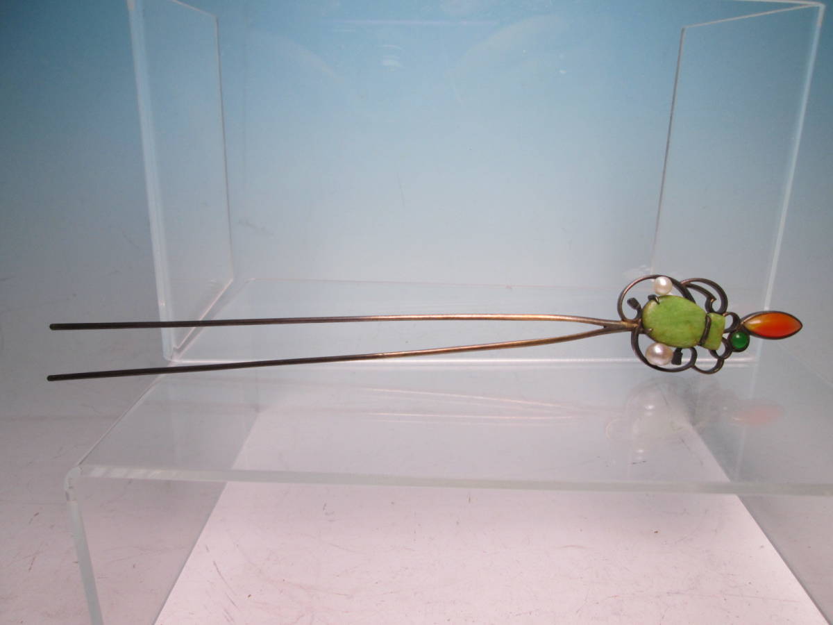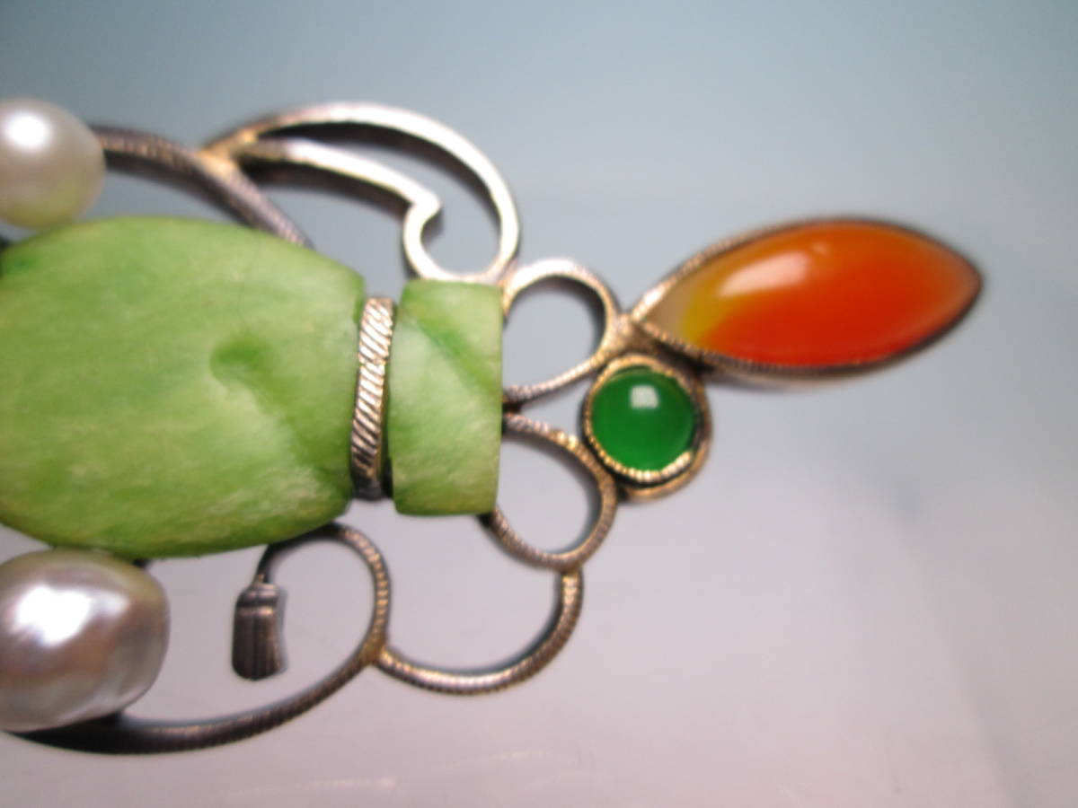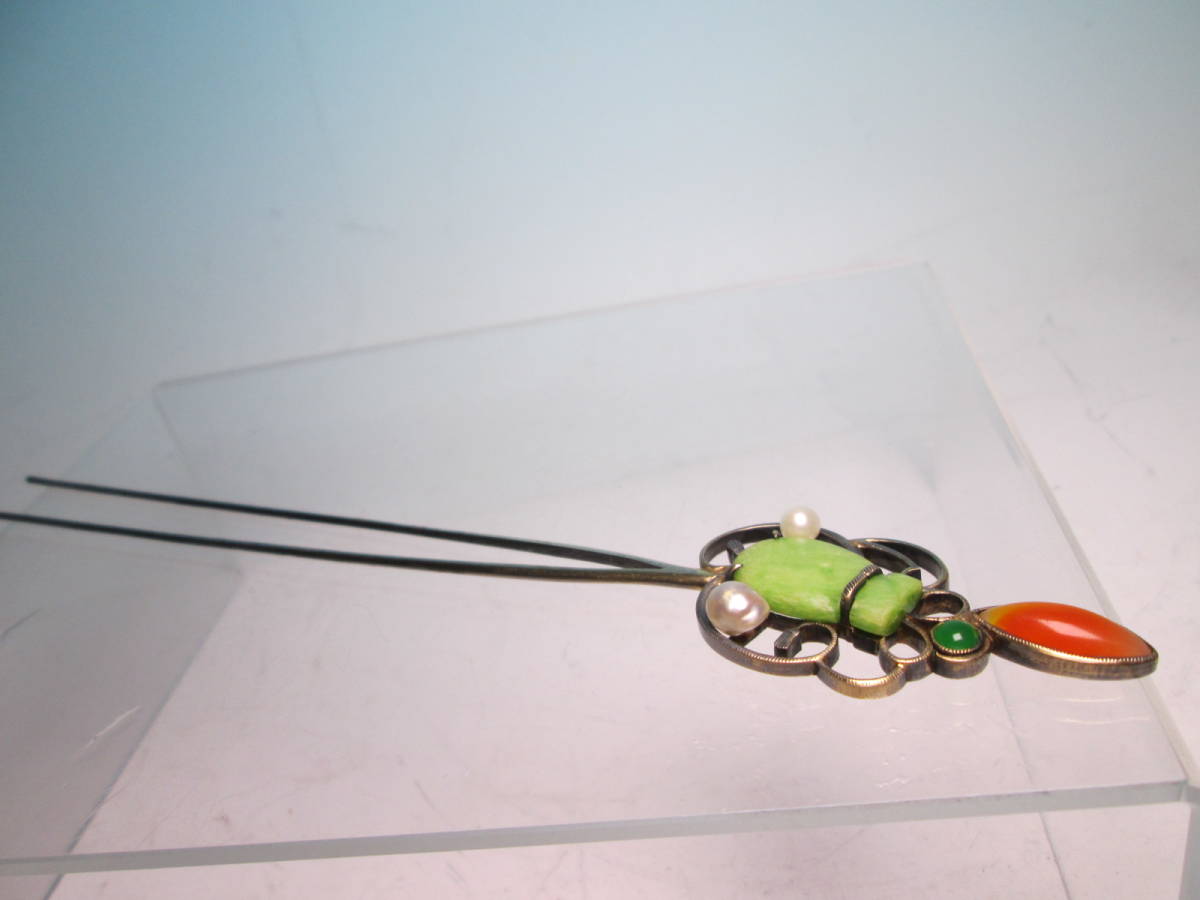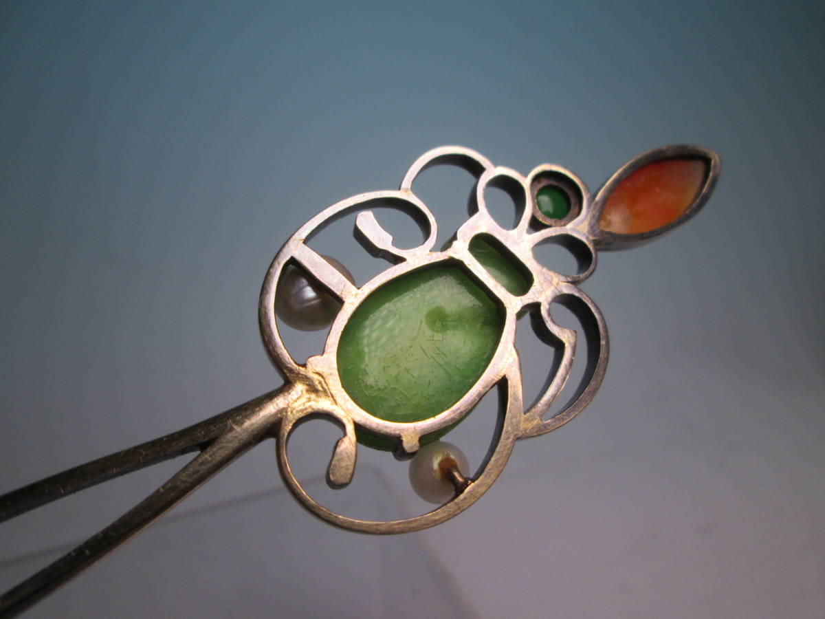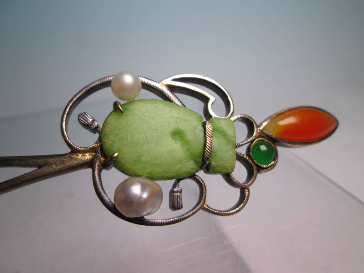 【江月】アンティーク・大振り 21,2cm 緑石本瑪瑙真珠飾り宝袋のかんざし 19,14g