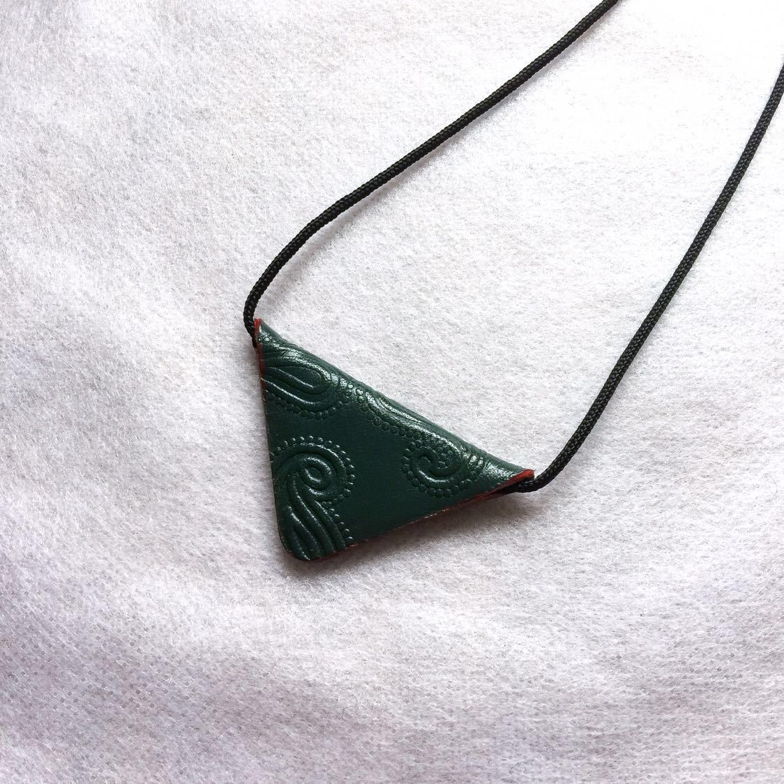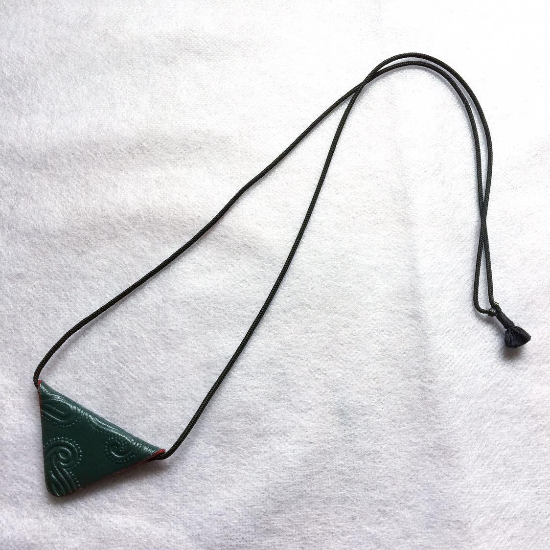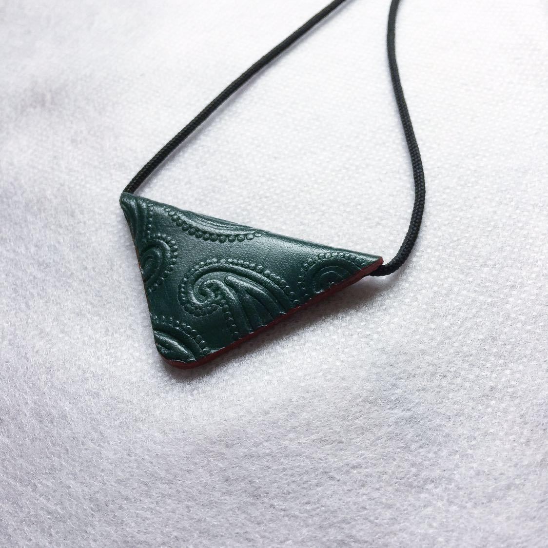 ペイズリーの型押しです。縁がレッドで飾られ、アクセントになっています。モノトーンコーデのワンポイントなどで映えます。