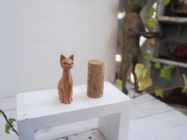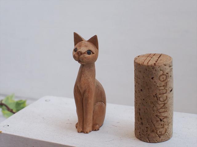 バリ島面白雑貨*ビャクダン小さなミニネコ木彫り・J☆根付ストラップ小物置物飾り工芸