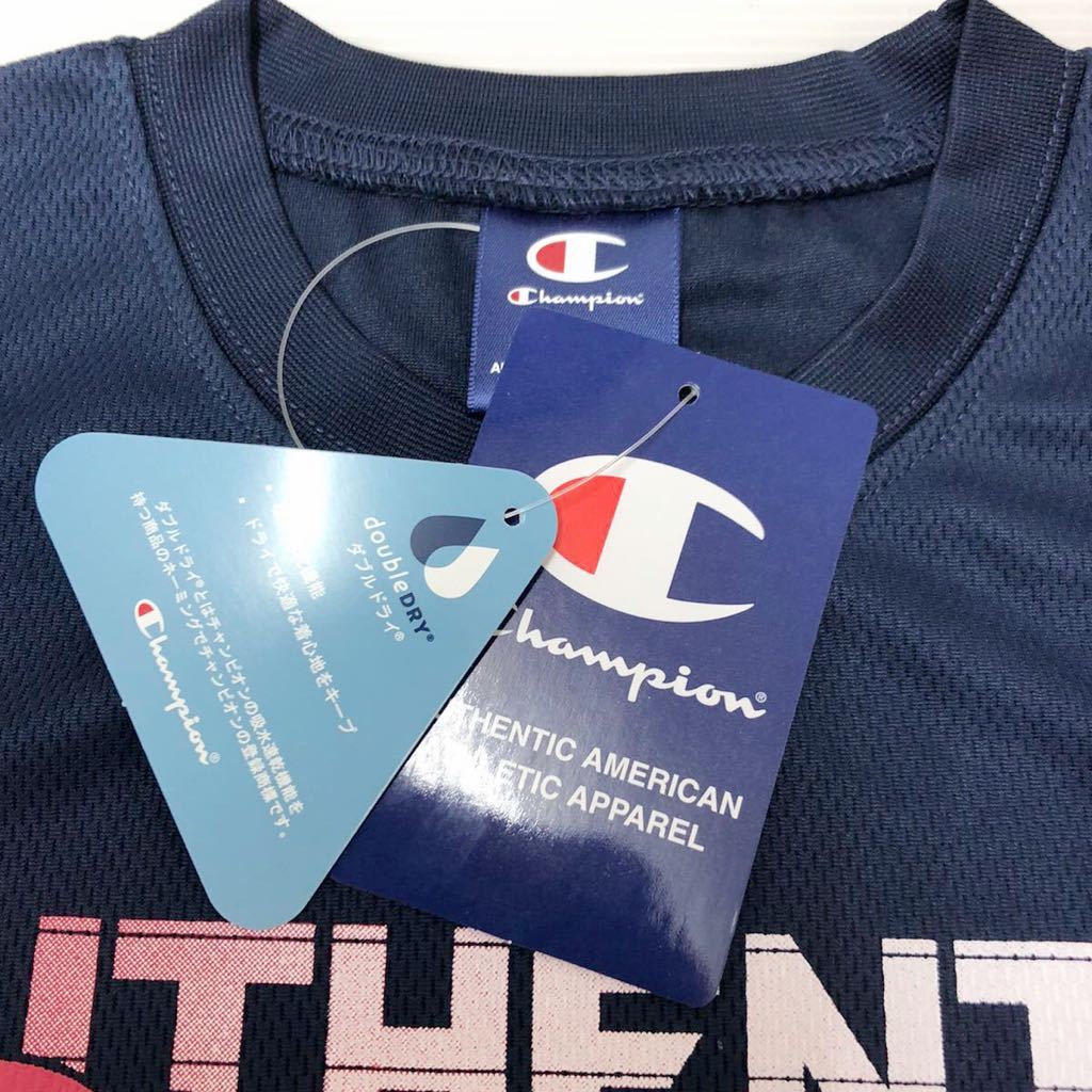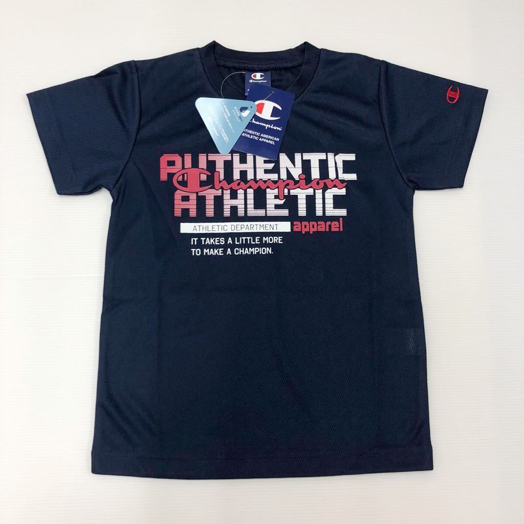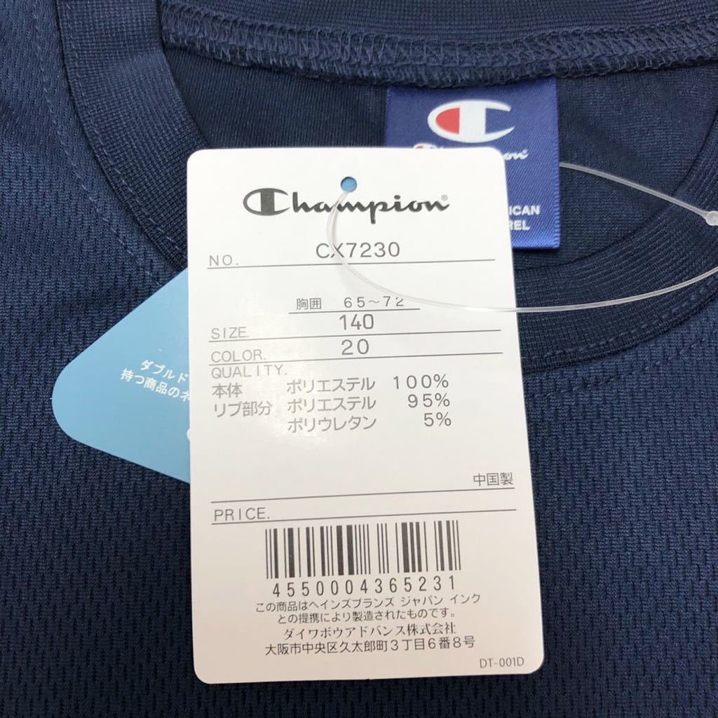 新品12252 [Champion]チャンピオン 140 紺ネイビー ジュニア 半袖ドライTシャツ  半袖Tシャツ ダブルドライ吸汗速乾CX7230