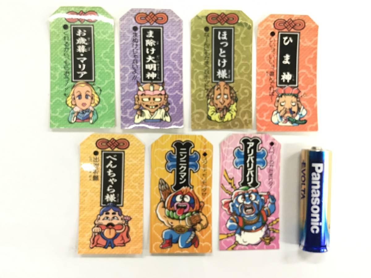 昭和食玩16 こまったときのガムだのみ おまもりシール おはらいシール 7枚セットです。 ほっとけ様 お歳暮・マリア ひま神 べんちゃら様 ま除け大明神 ニンニクマン アリバリバリ の7枚・美品です。画像が全てです。