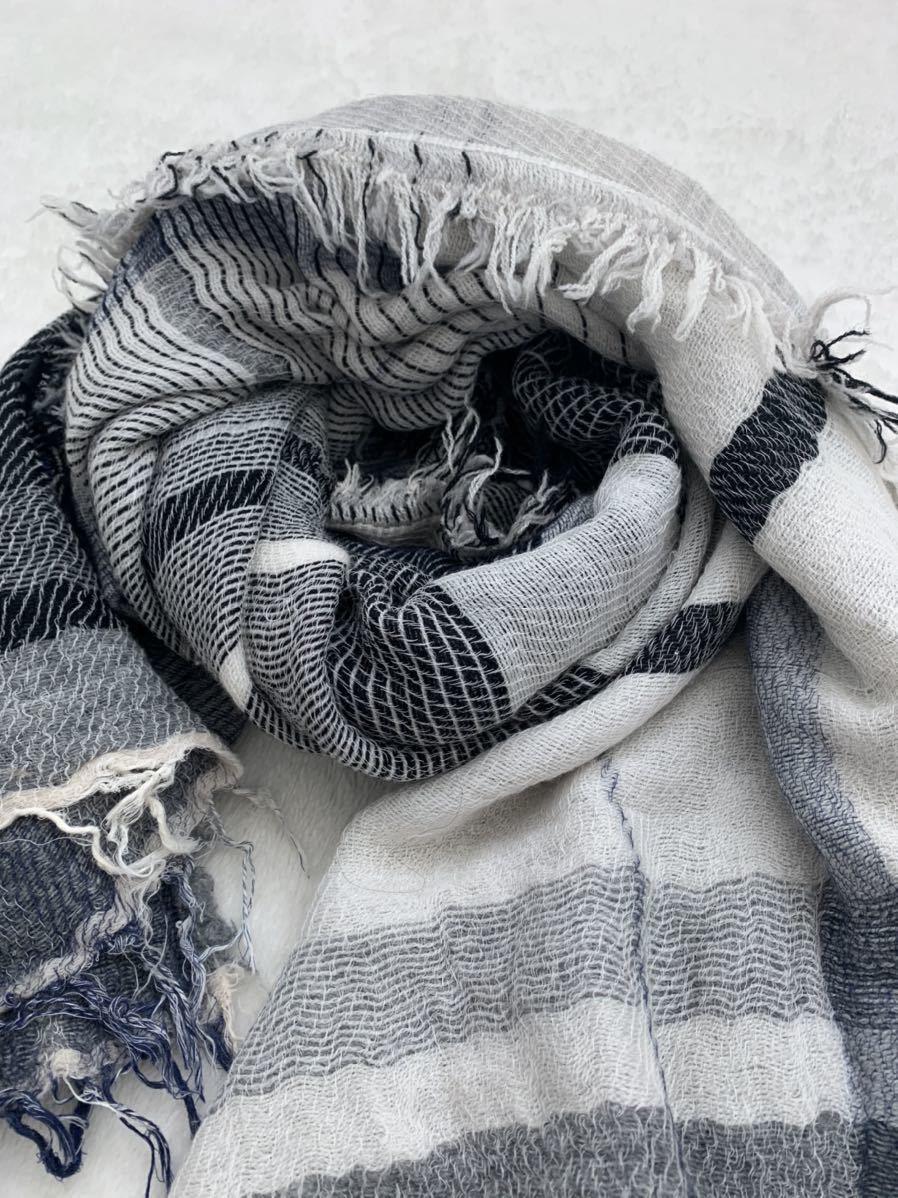 tamaki nime 大判 織り柄ストール タマキニメ ホワイト ブラック (KI)