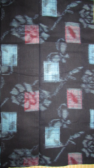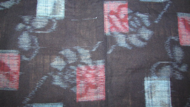 1000円値引き(旧家・蔵出し)(古布・備後木綿・絣蝶に薔薇模様単衣着物)貴重珍品・珍柄