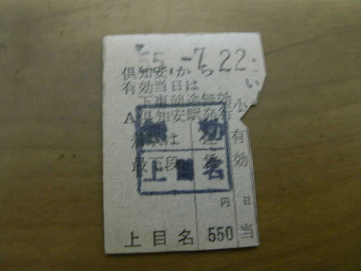 函館本線 倶知安から上目名ゆき 550円 昭和55年7月22日 倶知安駅発行