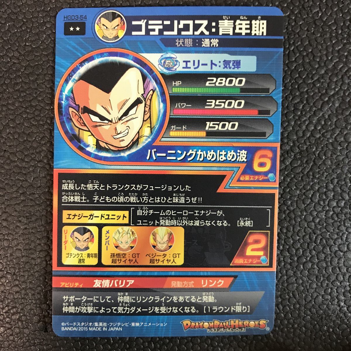 HGD3弾レア/ ゴテンクス:青年期(通常)/ HGD3-54/ 技:バーニングかめはめ波/ ドラゴンボールヒーローズ/ レアリティ:☆☆/ 2015 BANDAI