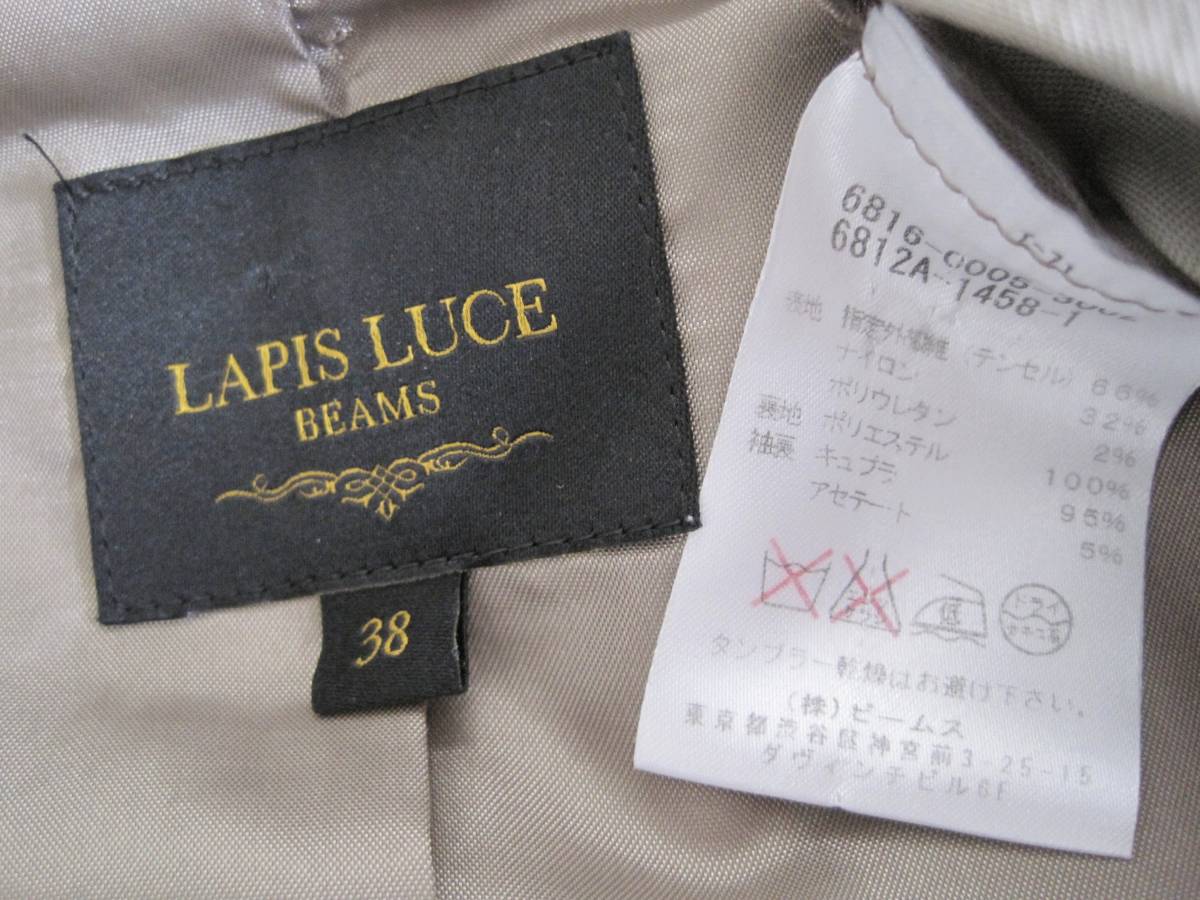ラピスルーチェ ビームス テーラードジャケット 。サイズ38。