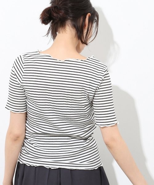 | ♥商品説明♥ | シンプルでデイリーに活躍間違い無し! 優しくソフトにフィットし気持ち良い着心地の テレコ素材を使用したプルオーバー。 程よく開いたラウンドネックが大人っぽく女性らしいデザイン。 シンプルながらも表情あるテレコ素材で、 さらっと着るだけでこなれ感が出る1枚。 気になる腕のラインを綺麗にみせてくれる絶妙な袖丈も魅力。 サロペットやキャミワンピのインナーにもぴったり。 カラー : ボーダー サイズ :F/着丈56 | 肩幅35 | バスト82 | そで丈24.5cm 素材:ポリエステル 60% 綿 34% ポリウレタン 6% 状態 :未使用タグあり |