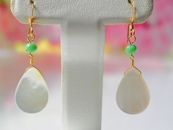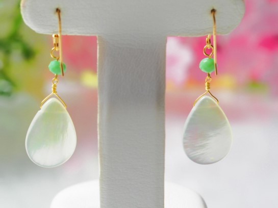 虹色の照りが美しいシェルに小粒のカット緑石を組合わせて