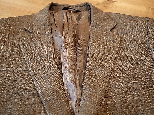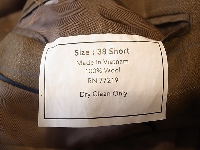 ●ブランド 「Joseph&Feiss」アメリカ古着 ●サイズ表記 38S 日本サイズの M相当 肩幅…46cm(肩先から肩先の間の長さ) 身幅…54cm(両脇を横直線に結んだ長さ) 着丈…75cm(後衿ぐり中央から後身頃裾) 袖丈…60cm(袖付けの肩先から袖先) ※平置き状態での素人採寸ですので、多少の誤差はご了承ください。 ●素材表記…100%ウール 秋冬春向き ●色… 茶×ベージュのミックス ヘリンボーンストライプ生地 ●裏地… 総裏お台場仕立て ●ポケット… フラップポケット ●ベント… センターベント 製造国表記… ベトナム ●状態… 使用感は少ない美品です。 ★送料 全国一律 700円 佐川急便 (北海道900円 沖縄その他離島1700円) ※複数ご購入の場合、同梱発送可能です。 |