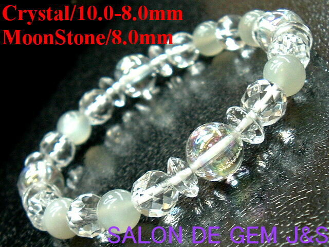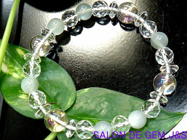 【オーロラ】【恋人達の石】【高級天然クリスタル/天然ムーンストーン 風水・開運ブレスレット】8.0mm/約16cm