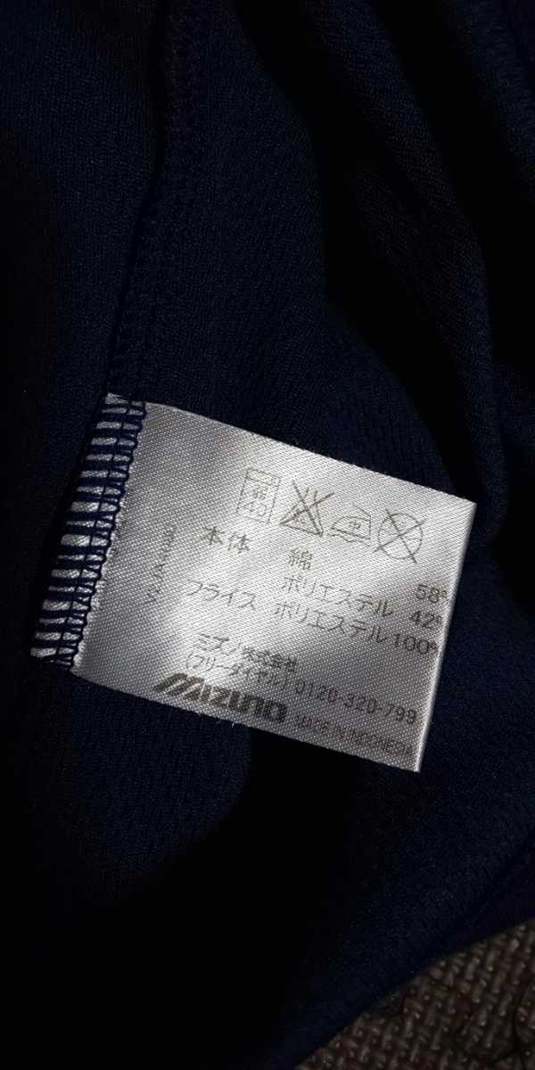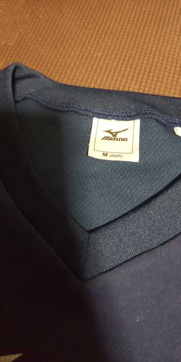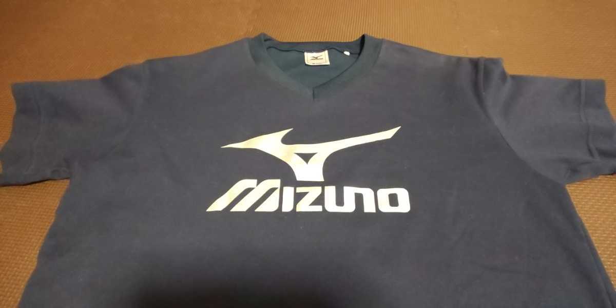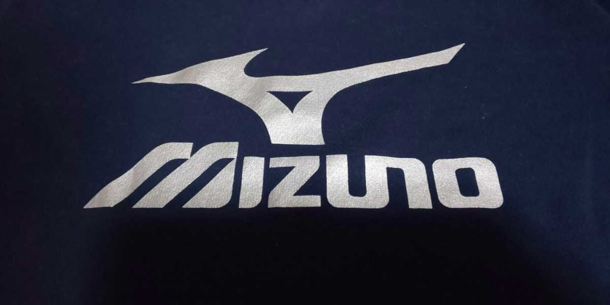 美品MIZUNO濃紺、ロゴシルバー半袖ストレッチトップス