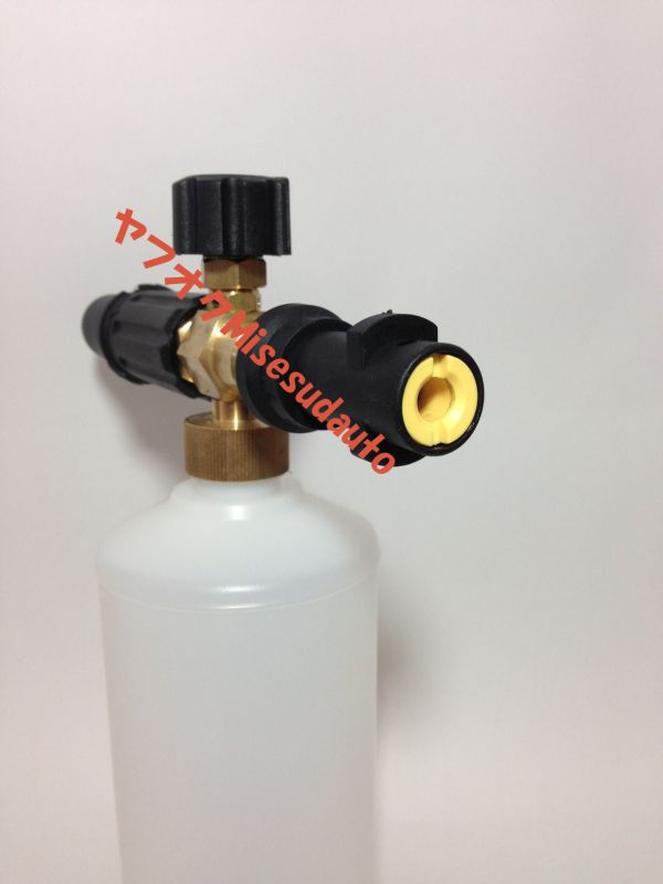 | 正真正銘の正規品スノーフォームランスです。 粗悪な類似品が多数出品されているようですので、 十分ご注意ください。 ケルヒャーの家庭用高圧洗浄機 Kシリーズ、JTKシリーズ専用で使えます。 純正フォームノズルの上位品としてお考えください。 変換アダプターを使えば、他社製本体でも使えるようです。(未確認) *使用に問題はありませんが、 輸入品のため、若干のキズなどがある場合や、 仕様変更により若干形状が画像と異なる場合などございます。 在庫限りの超特価 6,980円! 最近仕入れが大変不安定になっており、 突然販売終了となることもありますので、 お早めにご検討いただければと、思います。 純正のものですと、水っぽく垂れやすい洗車に不向きな泡しか 出来ませんが、こちらのフォームランスですと、 洗剤と空気の量を調節することにより、画像5,6のような、 質の良い泡を大量に作ることが出来ます。 先端を回転させることにより、泡をワイドに噴射出来る 機能も搭載しています。 ボディーを一気に泡まみれにすることが可能です。 http://www.youtube.com/watch?v=5n0cl-TVtaw スノーフォームランスの使用を紹介している動画です。 参考にご覧下さい。 愛車のキズ防止、または短時間での洗車に大きく貢献すること 間違いなしです! 別売りで、 コツ掴みに最適なテスト用シャンプー250mlは390円で、 安心安全な洗浄力+泡立ち抜群の 名門一流カーシャンプーは1リットル1,280円です。 薄めてお使いになれます。 また、すぐに使用できるよう、日本語説明書(簡単な洗車術も記載)を メールなどでお知らせします。 誤った洗車の仕方をしていると、 スノーフォームランスを使っても、 車のボディーにキズが間違いなくつきます。 説明書で洗車技術を学んでから、お使い下さい。 そういった点でも、当方は本体だけ売って終わりではありません。 販売実績、技術、サポート等、総合的に満足できるかを考慮して、 安い粗悪品に入札するかしないかを、ご検討下さい。 ページ下部にお客様の声を記載していますので、ご覧ください。 もし問題が発生しました場合は、責任を持って対応しますので、 ご安心の上、入札していだけましたら、幸いです。 当方は、出品マスターのシルバーを獲得しております。 安心安全かつ迅速丁寧な取引をお約束致します。 わずかな金額の差で比較されるよりも、 高い信頼性ある当方の出品から是非落札してください(^_^) 質問はご遠慮なくどうぞ。 よろしくお願い致します。 |