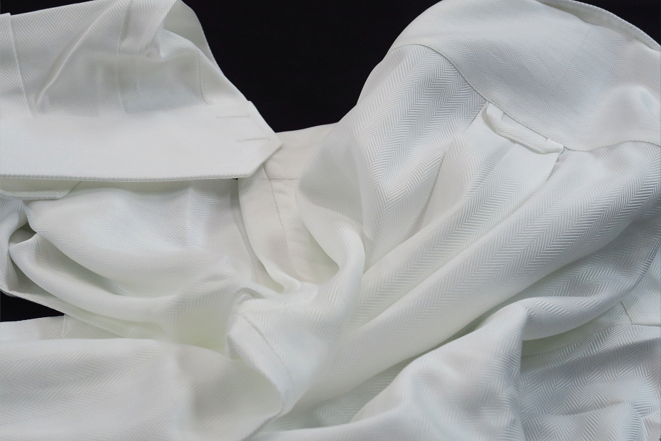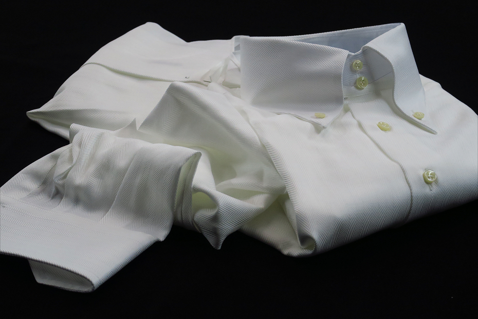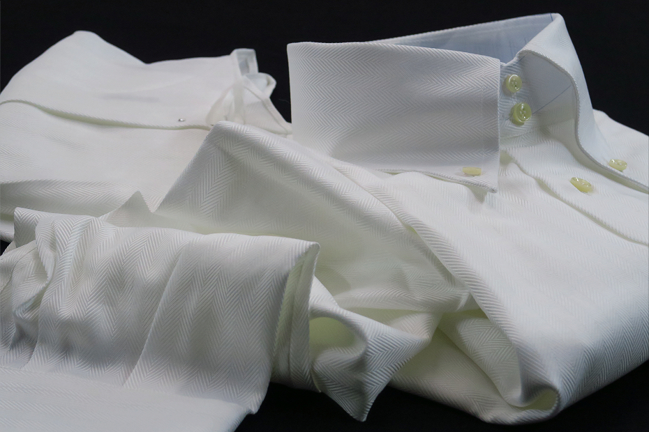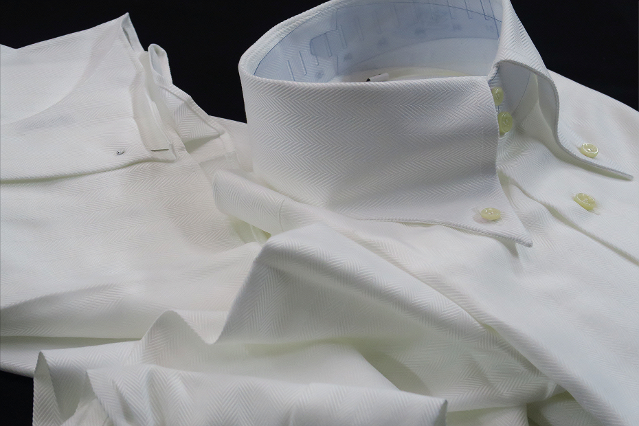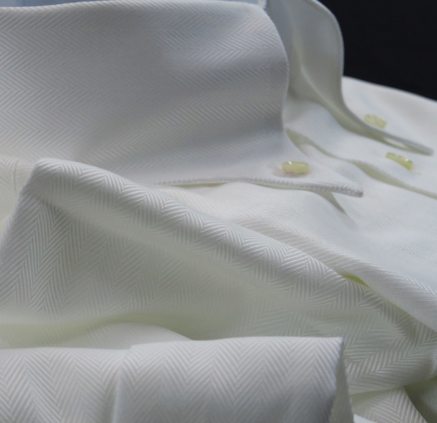 ★イタリアシャツ白秋へのへリンボーン杉綾 白