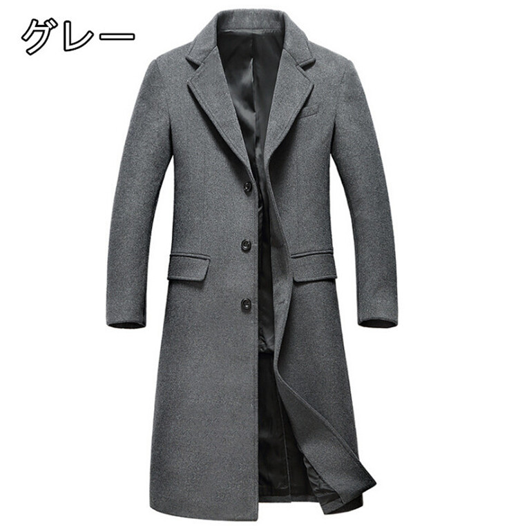 チェスターコート メンズ ロングコート ウール混コート冬物 厚手 アウター 通勤 灰 3XL
