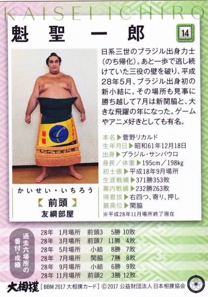BBM大相撲カード2017 14 魁聖 友綱部屋 前頭 ブラジル・サンパウロ