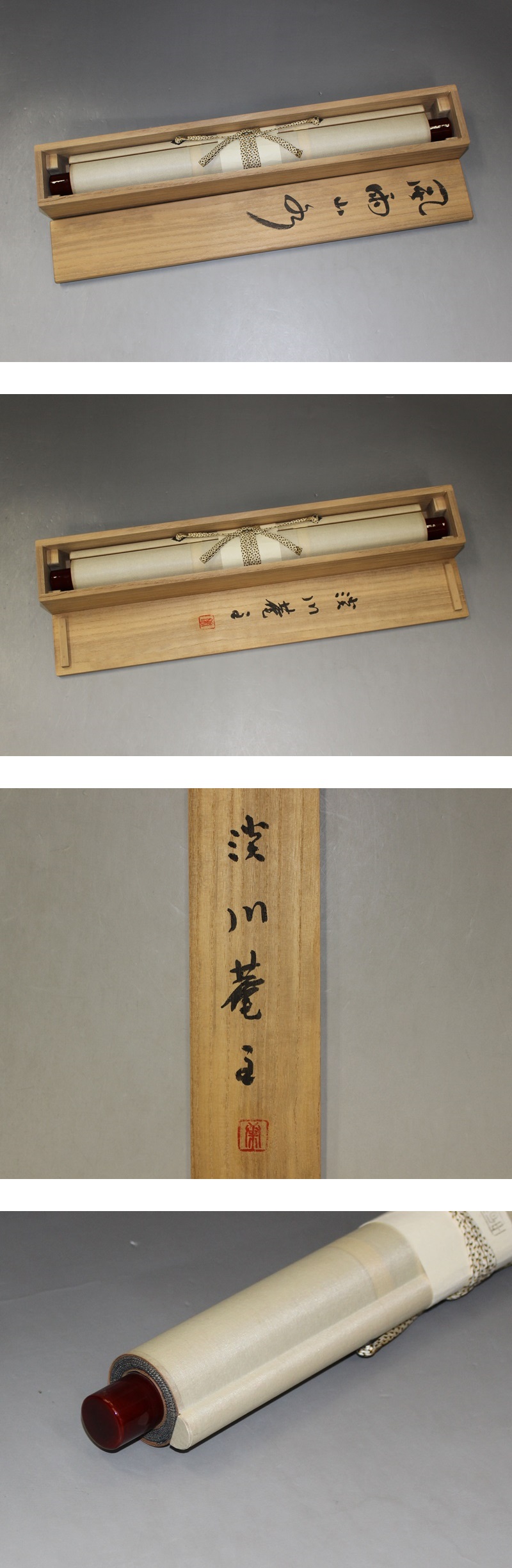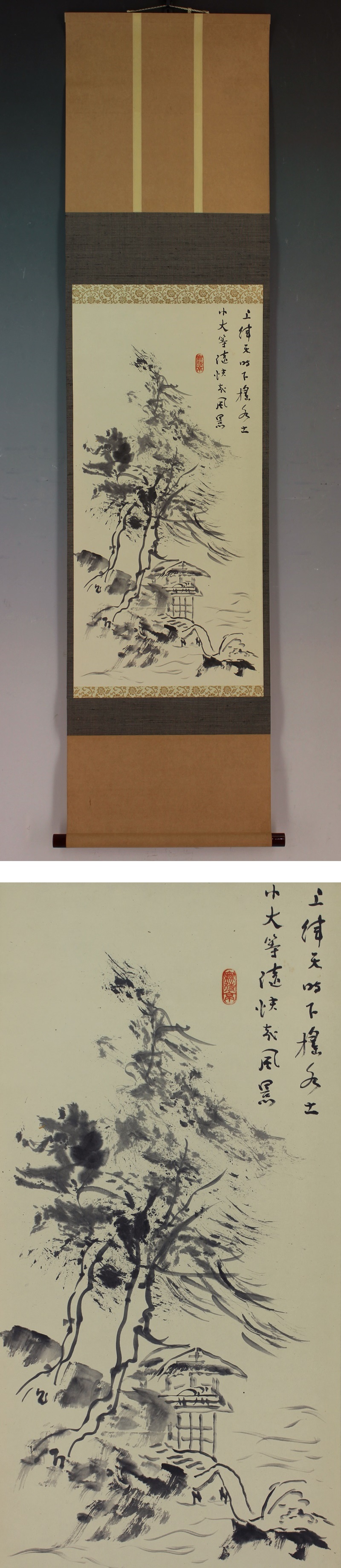 | №2001053【真作】淡川康一【風雨山水】◆紙本◆共箱◆京都春芳堂製◆掛軸 w01053 | |