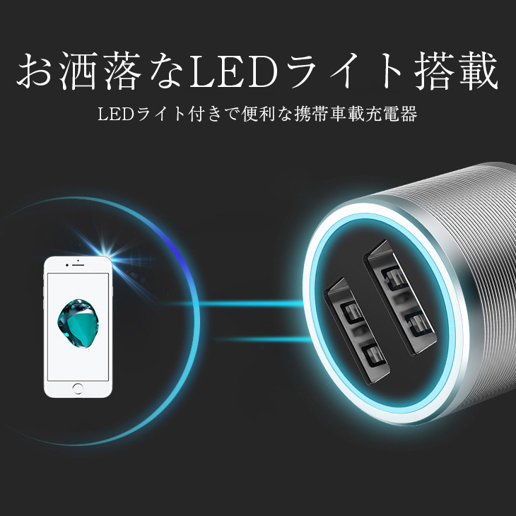 ・LEDライトが付いていて、大変便利な携帯車載充電器です。