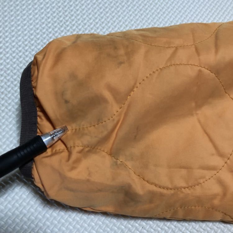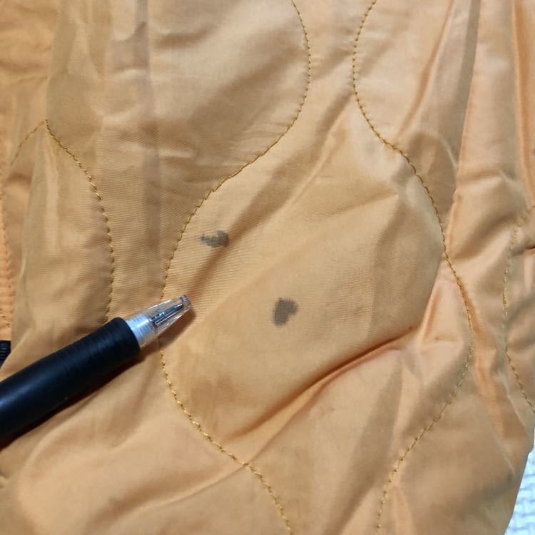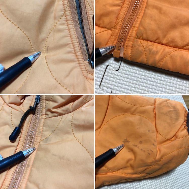 オレンジ側 フロント裾とポケット周りと首元と袖に汚れがあります。
