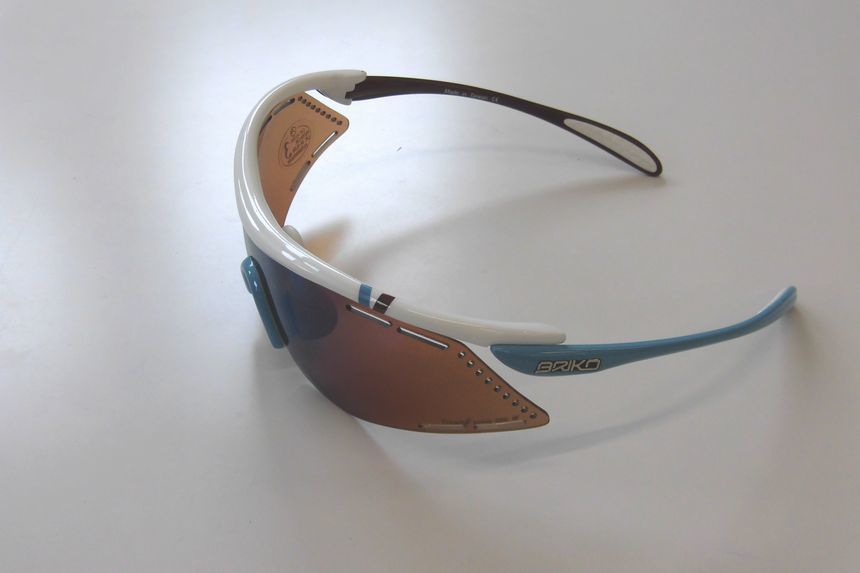 BRIKO サングラス ENDURE Racing Pro DUO 100505 フレーム:ホワイト/ブラウン/ブルー 定価¥18,700 スペアレンズ・専用ケース付き 価格交渉には、応じておりません。 新品未使用品!! | |||