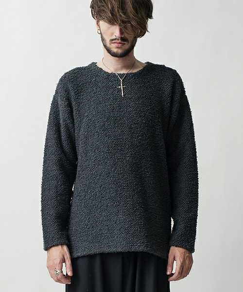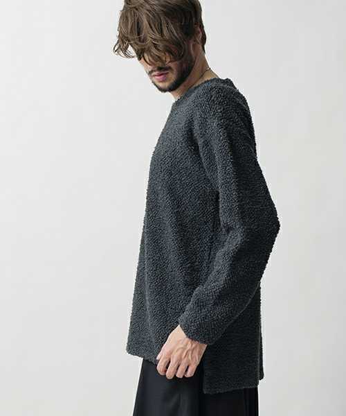 中番手の糸をループ状に編みパイル調の質感に編みたてたコットン生地のプルオーバーニット。