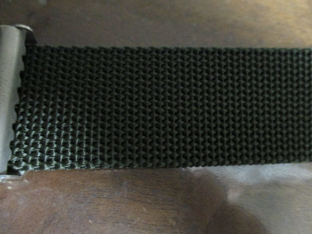 | 商品紹介 | カーキのミリタリー系の布ベルトです。 素材は表記がありませんが、おそらくナイロン製で耐久性もあります。 |