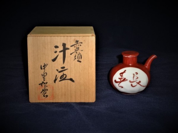 赤誤須汁滴・中里松雲 サイズ:Ф約6.5×H約7Cm 未使用自宅保管品 木箱 |