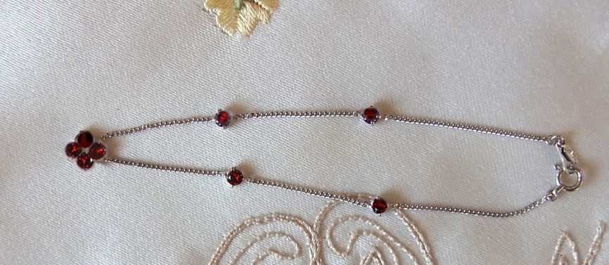 ☆ Pt900製"ハンドメイド*オリジナル商品” 3.0ミリラウンドカットと3.0ミリラウンドカット4石の菱形パーツ付ガーネットのオリジナルブレスレットです。 全長18.0センチです。 **1月誕生石**ガーネット宝石言葉**友情・忠実・貞節・勝利*** チェーンはPt850製、その他の素材はPt900製です。(喜平チェーンは巾1.1ミリ厚み0.6ミリ) ***貴石については、他にブルートパーズ・オニキス・ペリドット・シトリン等にも製作可***。 ケースに入れ、お届けいたします。 ***ご希望により、プレゼント用ラッピングは無料ですのでお気軽にお申し付けください*** ★レターパックライト・クロネコゆうパケット発送は簡易包装でケースが付いておりませんので、プレゼント用ラッピングはできません★ *ラッピング不可