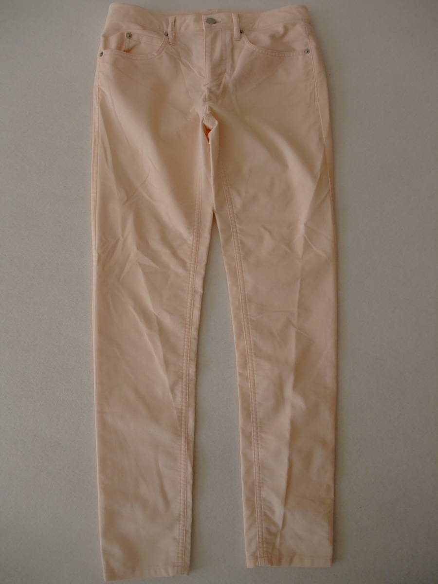 平置きで、ウエスト36.5㎝、ヒップ42.5㎝、股上21㎝、股下74㎝、渡り幅25㎝、裾幅13㎝。
