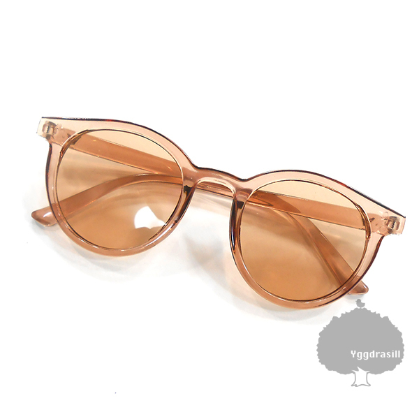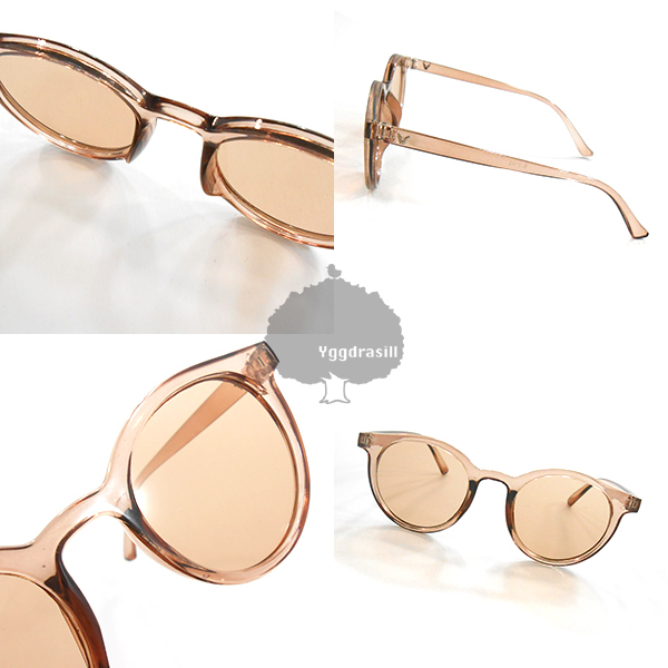 YGG★ラウンド型 サングラス クリアフレーム ライトブラウン系 薄茶系 レディース ライトブラウン 伊達メガネ 伊達眼鏡