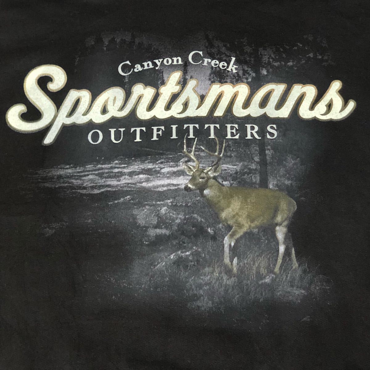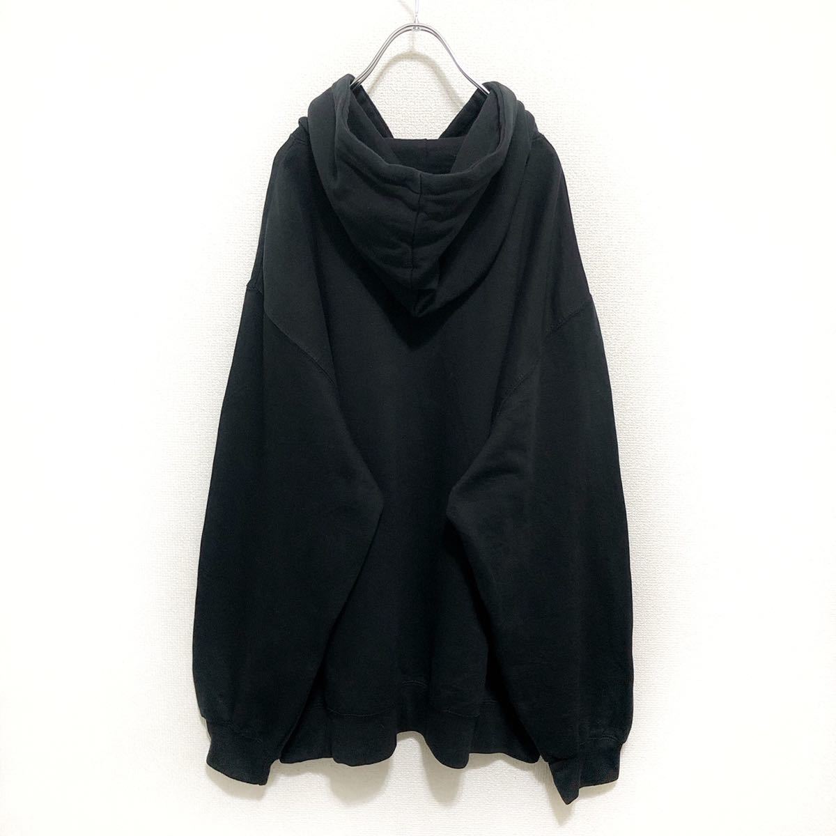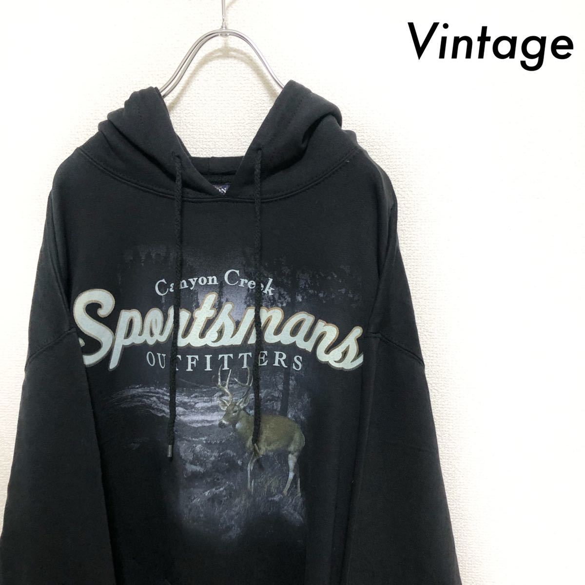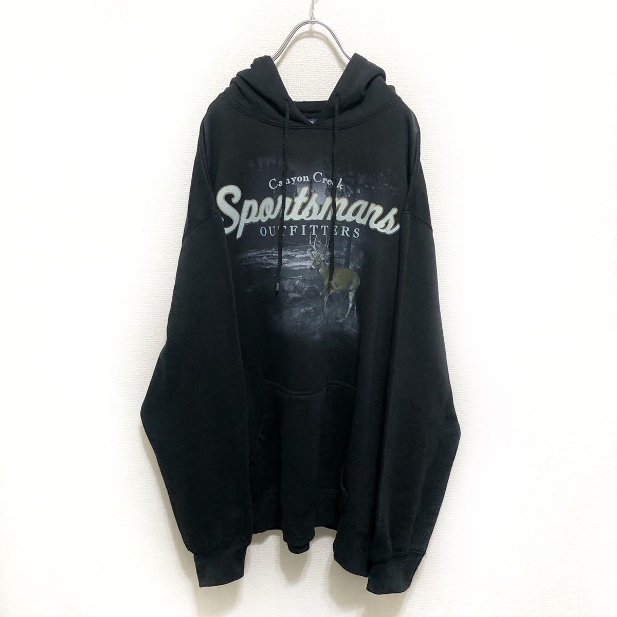 古着 トナカイ 英語ロゴプリント 長袖パーカー ビッグサイズ ブラック 黒 古着男子