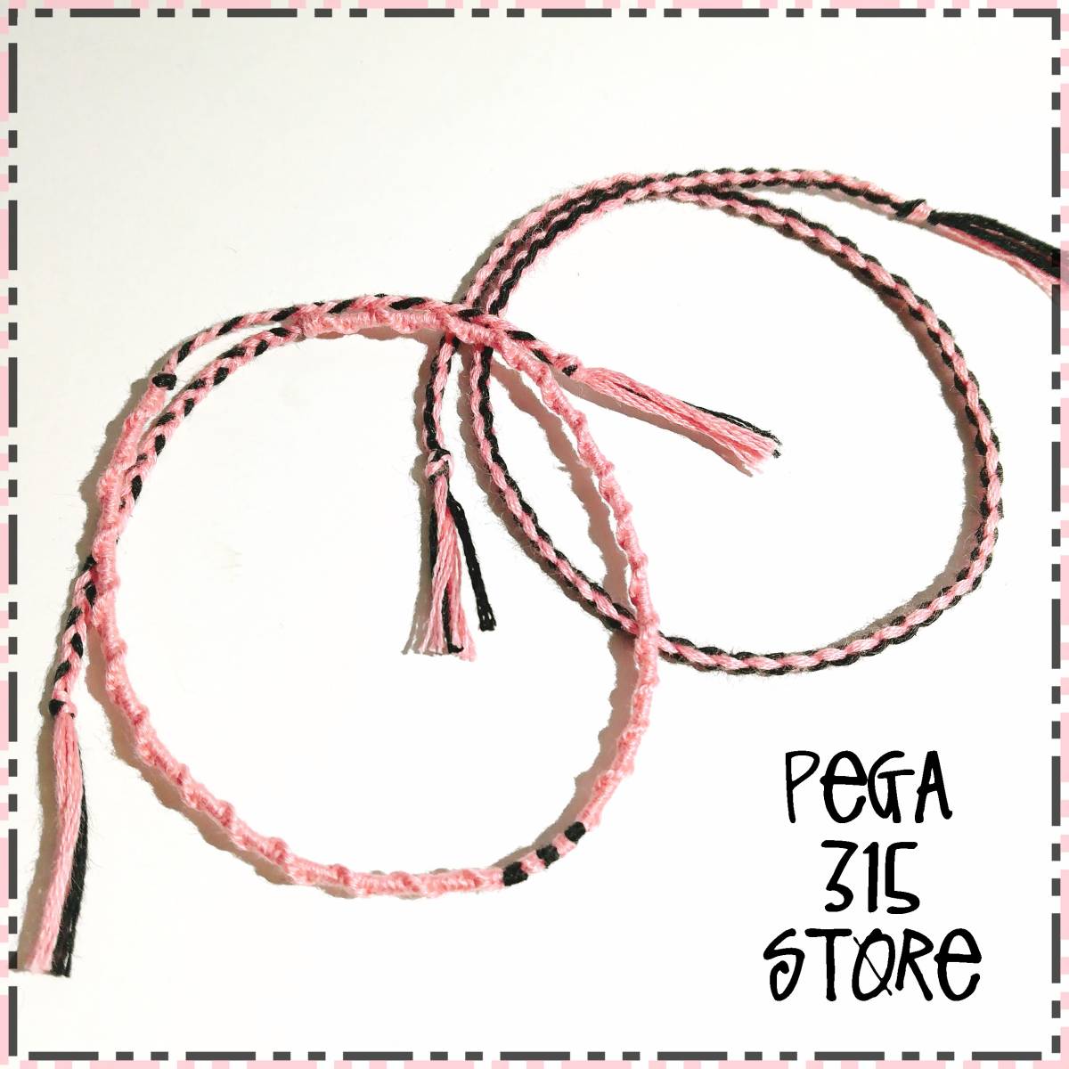 【送料無料】アンクレット ミサンガ 足首 3本ライン 2本セット レディース ブラックピンク