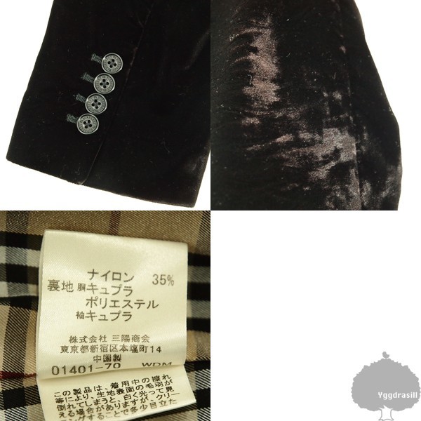 商品名:YGG★本物★バーバリーブラックレーベル★ベロア テーラード ジャケット S 黒系 #BURBERRY BLACK LABEL メンズ アウター トップス ブラック