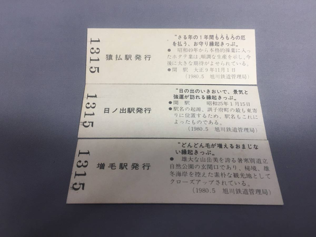 国鉄・旭川鉄道管理局 昭和55年5月5日 縁起きっぷ(入場券)3枚 【k17-066】