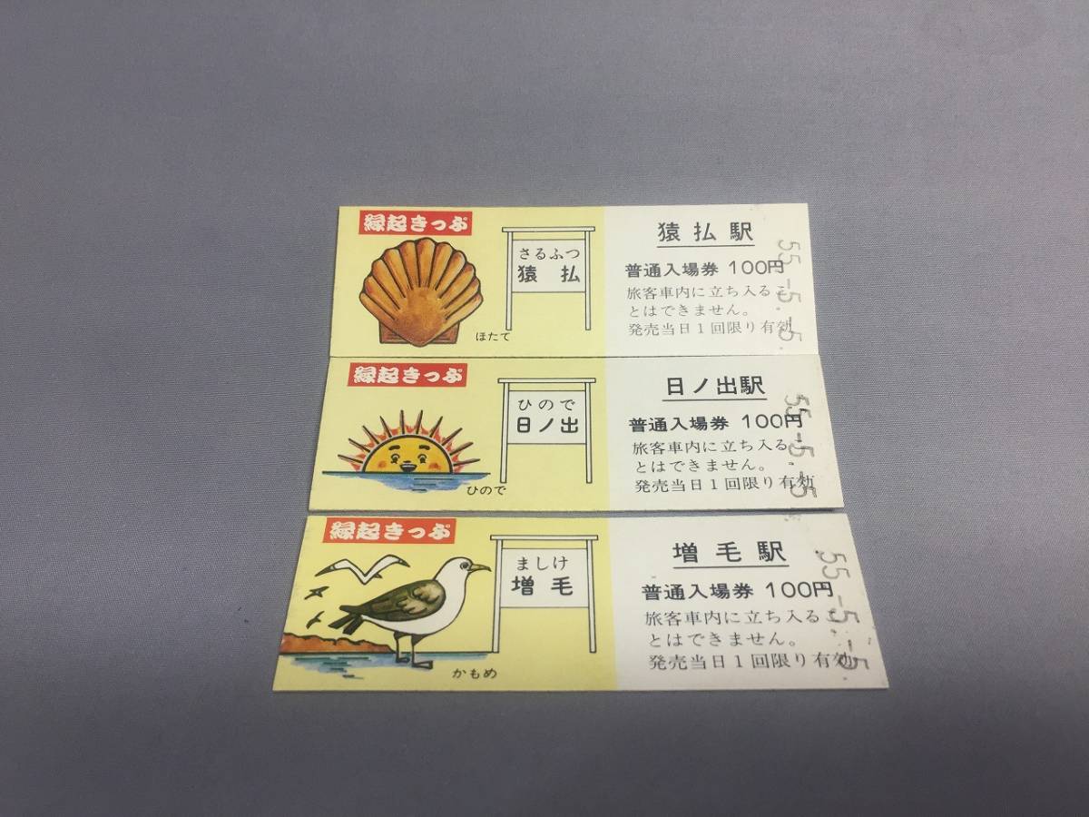 ◎ 「縁起キップ」 猿払駅 ・ 日の出駅 ・ 増毛駅の縁起の良いキップです。