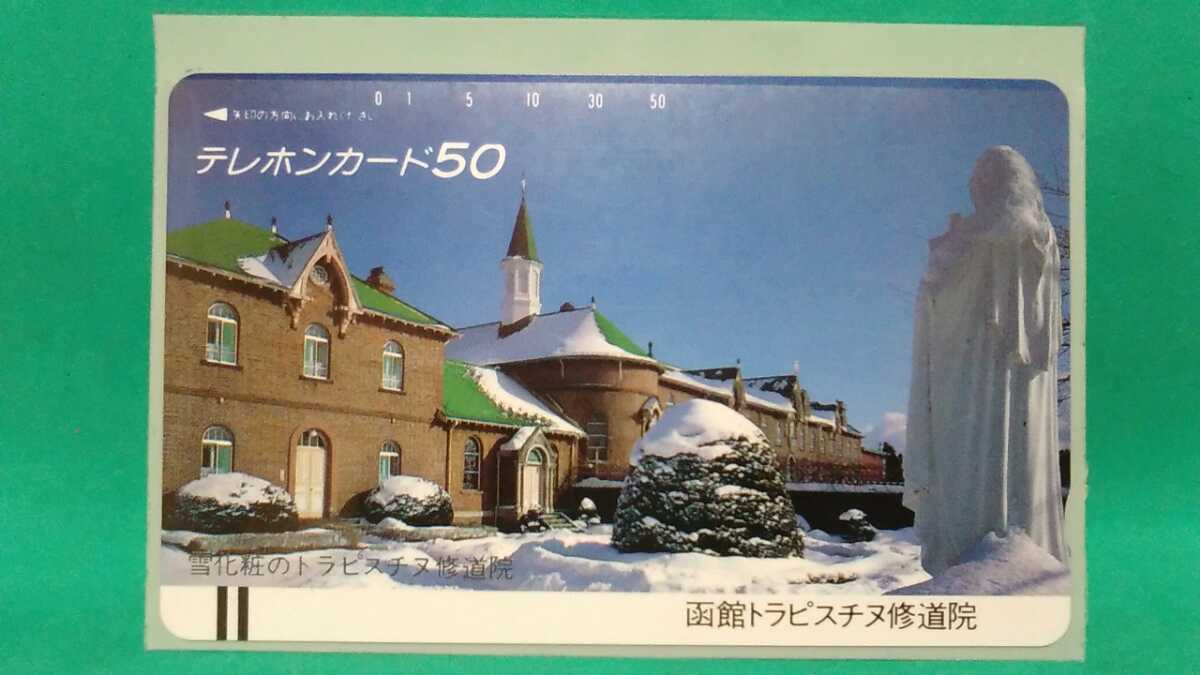 未使用。美品。北海道函館限定のテレホンカードです。非常に美しいトラピスチヌ修道院の写真が使われています。