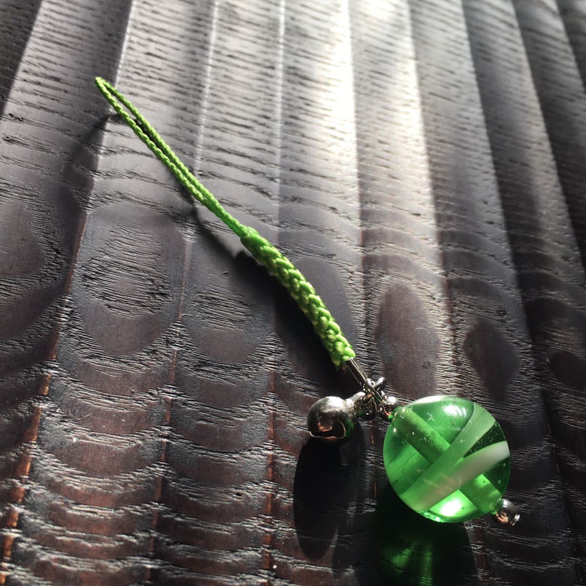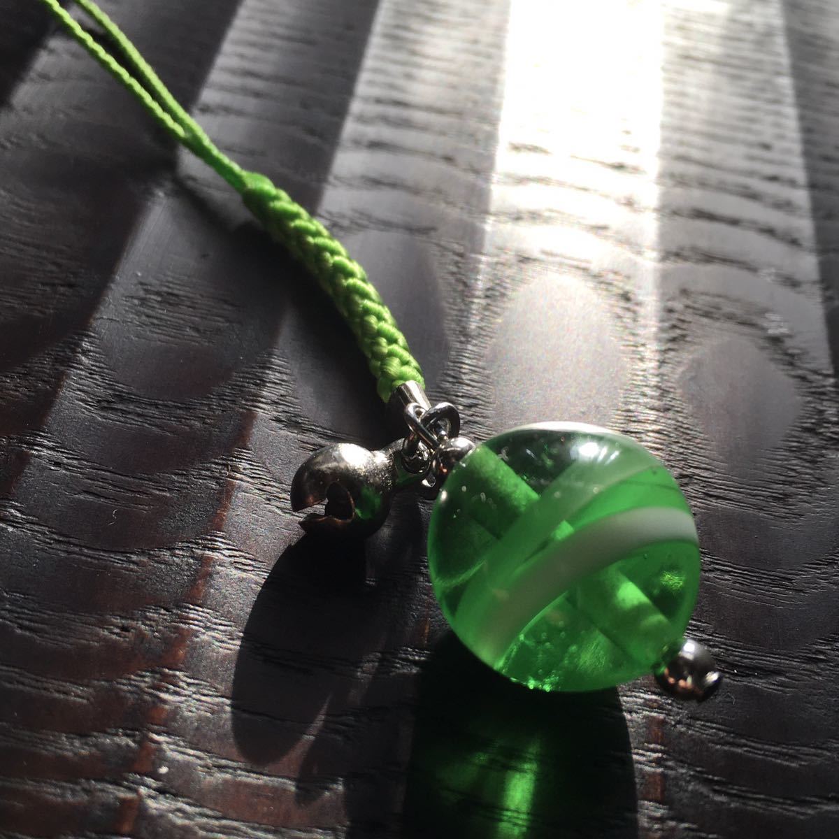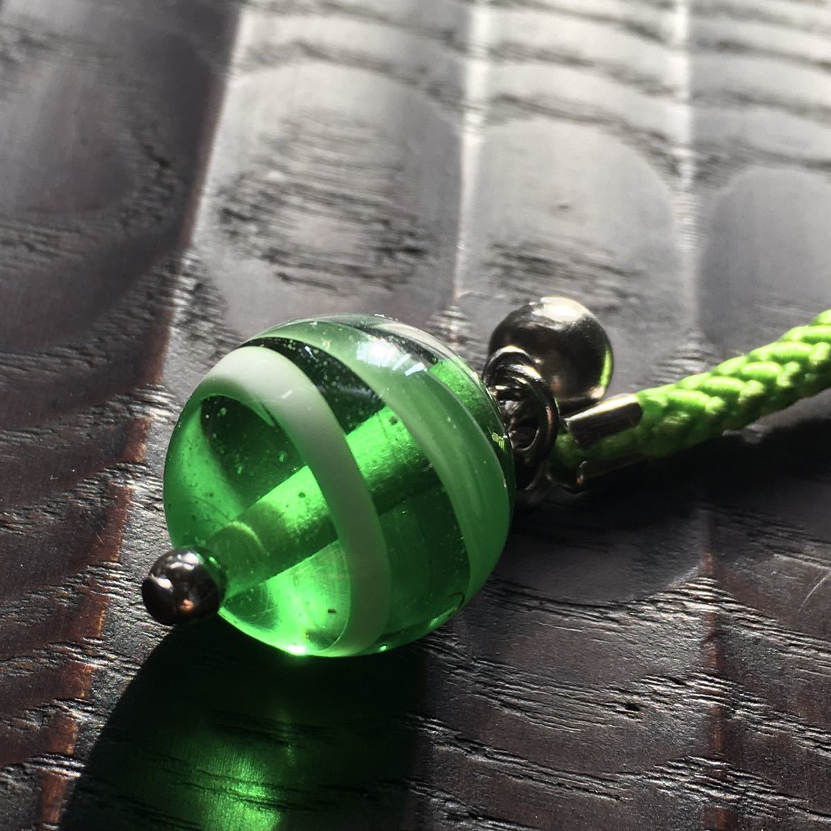 バーナーワークという技法で作った手作りのトンボ玉の根付です。
