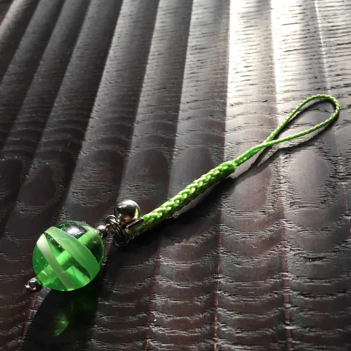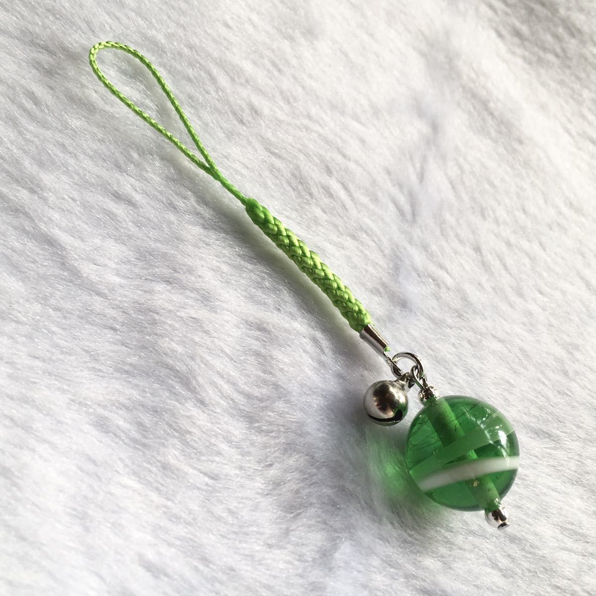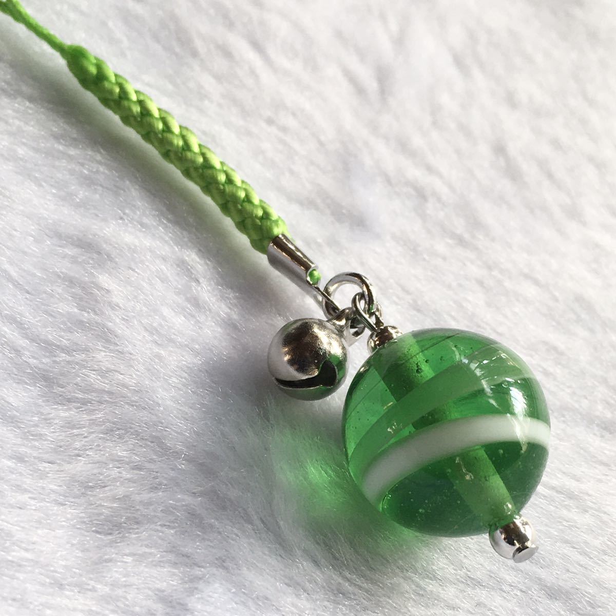 バーナーワークという技法で作った手作りのトンボ玉の根付です。