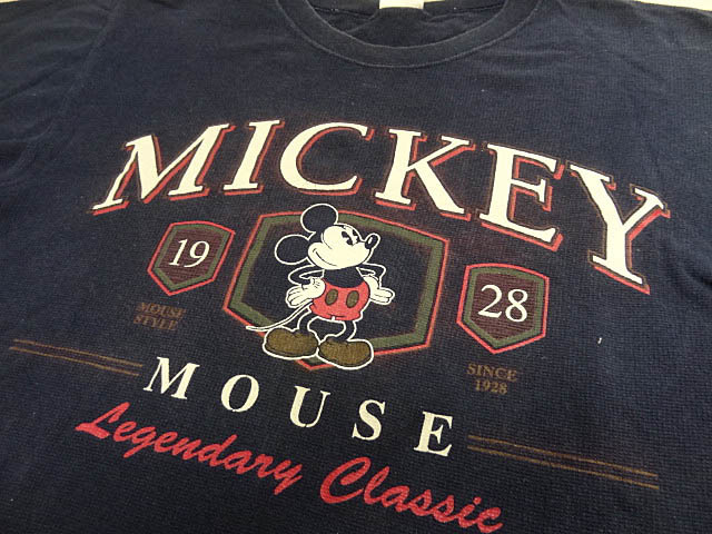 ビンテージ ディズニー オフィシャル ミッキーマウス プリント Tシャツ 青 ネイビー 紺 パイル サーマル ワッフル ストア キャラクター 珍