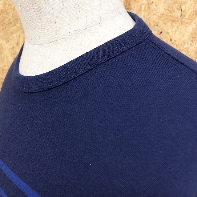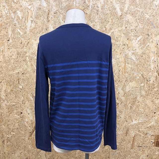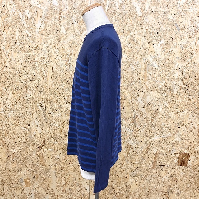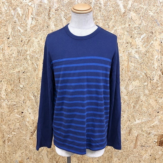 | 商品タイトル | GAP ギャップ S メンズ Tシャツ カットソー ボーダー 丸首 クル―ネック 裾スリット ボックスカット 長袖 綿100% ネイビー×ブルー 紺×青 |