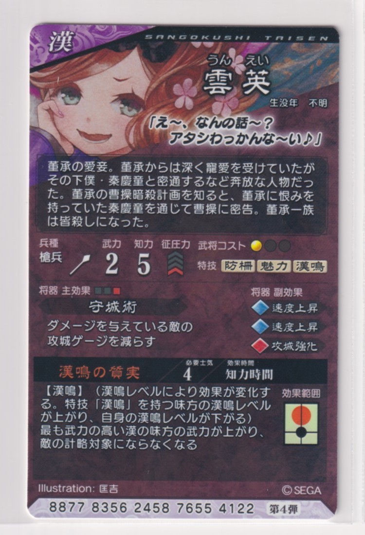 三国志大戦5 漢 4弾 R 雲英 漢鳴の質実 守城術 コレクション用