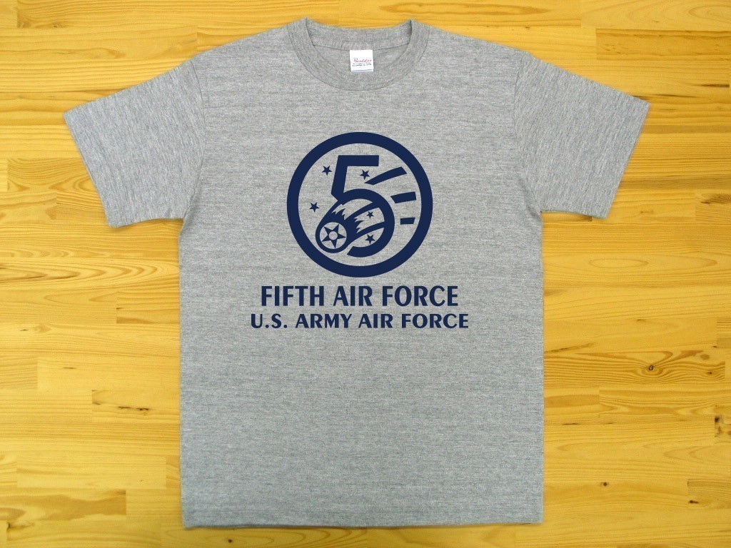 5th AIR FORCE 杢グレー 5.6oz 半袖Tシャツ 紺 S ミリタリー U.S. ARMY AIR FORCE FIFTH