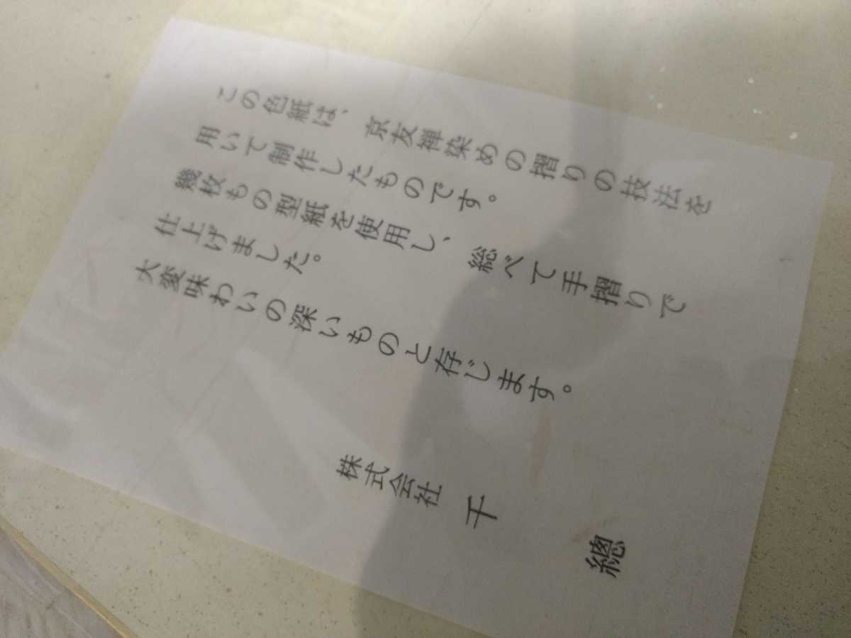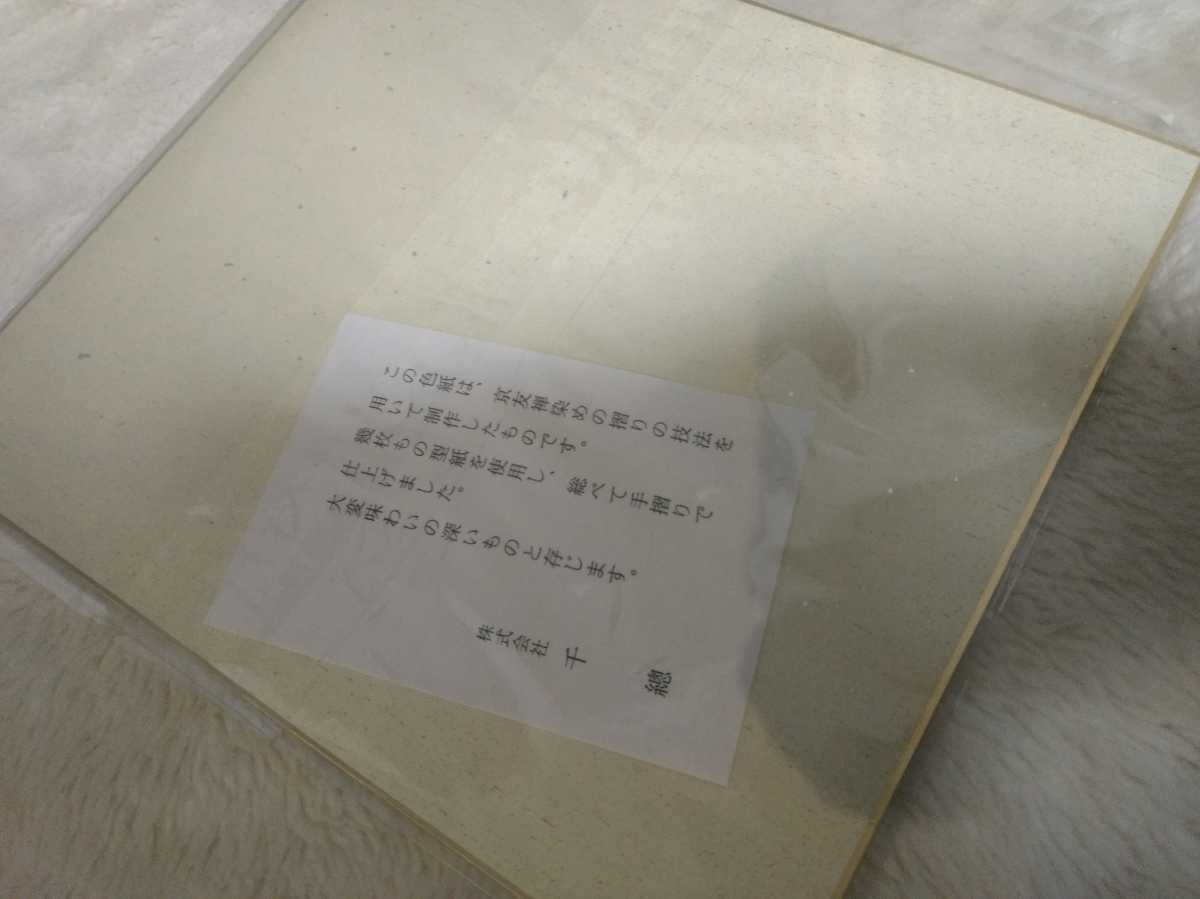 千總の、京友禅染めの摺り技法を用いて制作された、幾枚もの型紙を使用し、総べて手摺りで仕上げられた作品の色紙です。