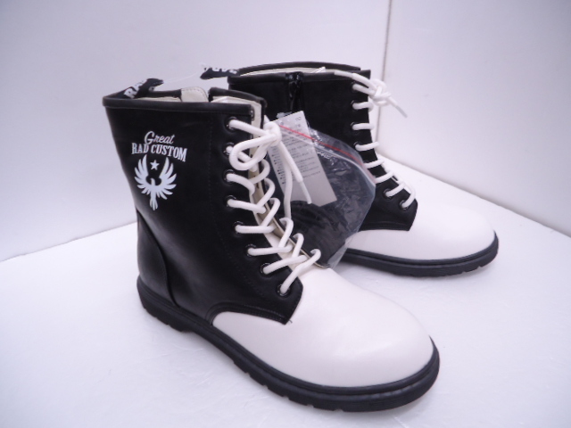 【KCM】bebe-11-23.0★新品未使用品★【BeBe RAD CUSTOM/ベベ ラッドカスタム】キッズ レースアップブーツ 23.0cm ブラック/ホワイト