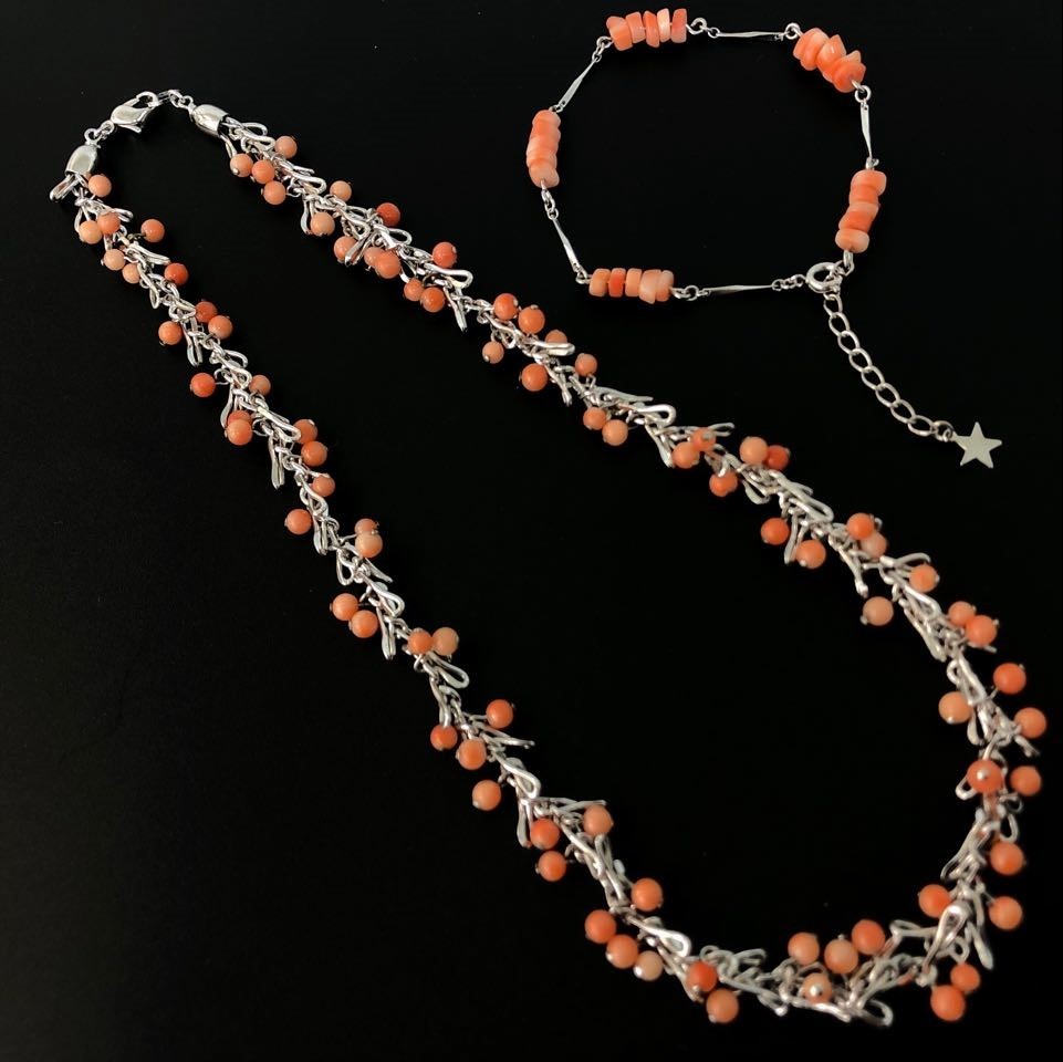★素敵 天然サンゴ ネックレス&ブレスレット セット 約33.8g | |||||||||||||||||||