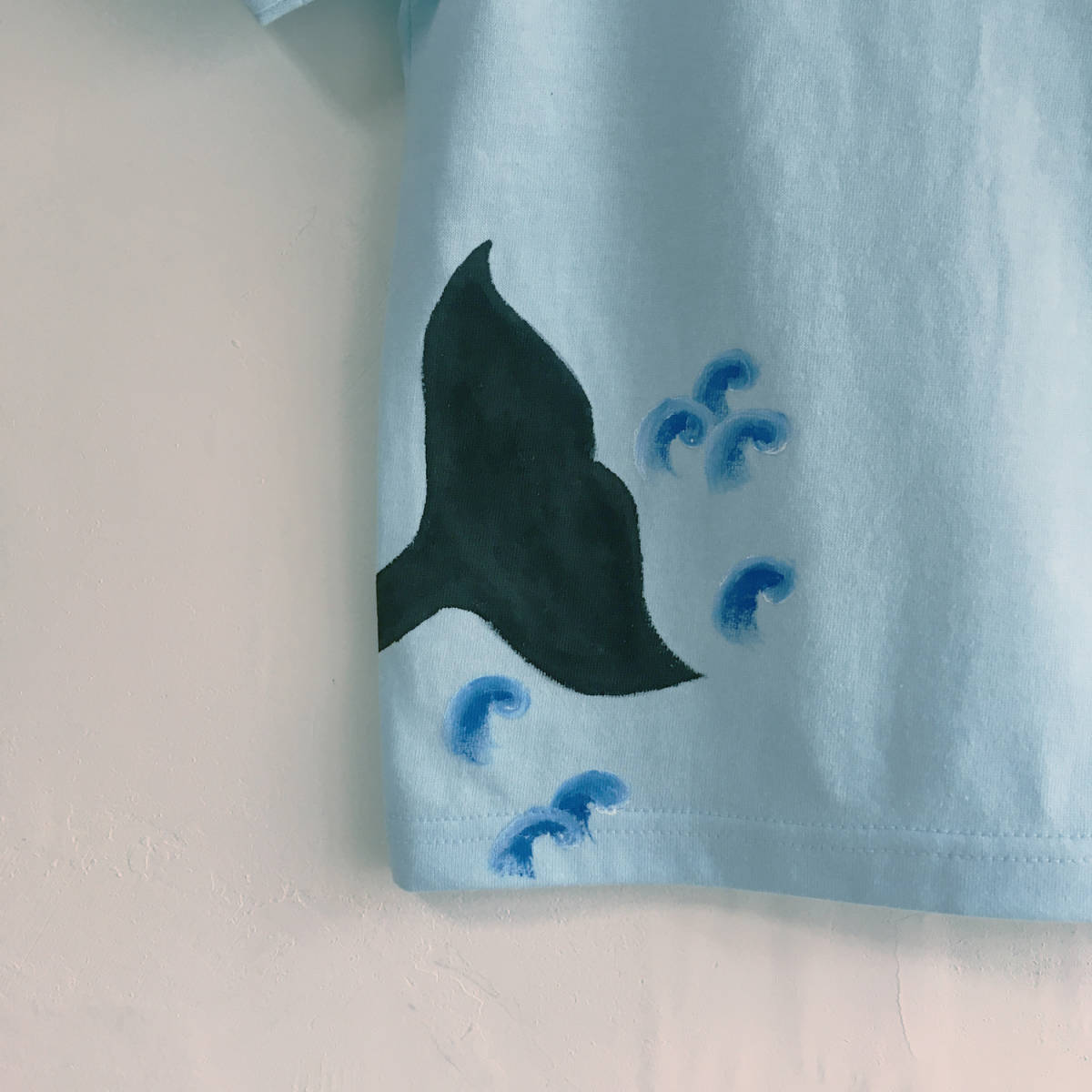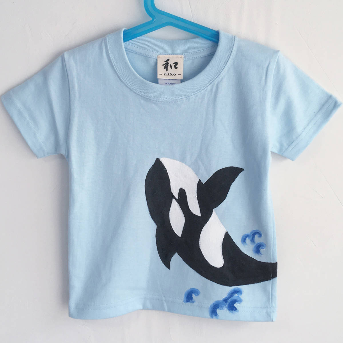 ハンドメイド 手描きTシャツ キッズ Tシャツ シャチ柄Tシャツ 手描きで描いたシャチ柄Tシャツ | |||