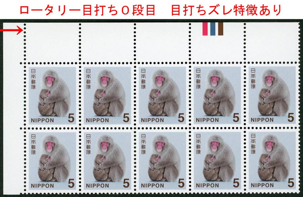 ●ロータリー目打ち 特徴0段目 目打ずれ特徴あり の10枚ブロックです。「ロータリー目打ち」ということで、当然国立シート分です(カルトール銘シートには目打ちバラエティはありませんので)。