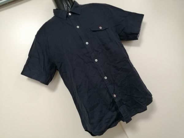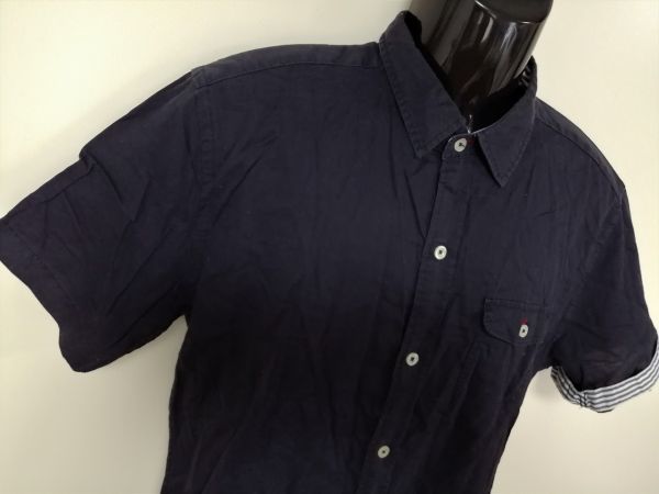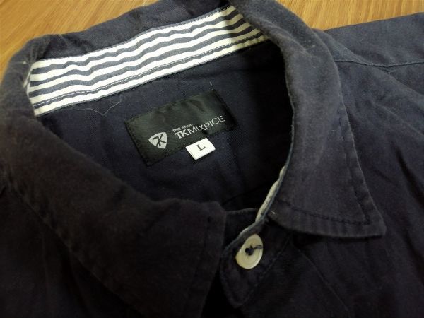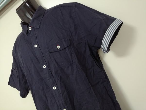 kkyj4332 ■ THE SHOP TK MIXPICE ■ ザショップティーケーミクスパイス シャツ トップス 半袖 コットン ダークネイビー 濃紺 L