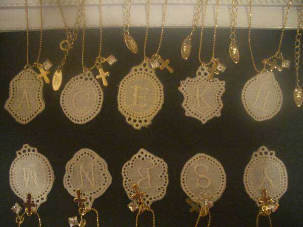 こちらはタグ有り、タグ無し両方有りますがすべて未使用新品♪ 華奢なチェーンは40センチ位で多少調整でき、イニシャルレースは2×3センチ位♪ 素材はレーヨン・真鍮・スワロです♪ スワロフスキーとクロスがとても可愛く上品な商品です(#^.^#) 画像が出品商品そのものですのでよく御覧の上、神経質でない、NCNRで御了承いただける方のみどうぞ宜しくお願いします♪ 他にも沢山可愛い商品を色々出品しておりますので是非ご覧下さい(^_-)-☆ まとめて取引はごめんなさい、ですが、同梱は大歓迎です♪ 必ず自己紹介をご覧くださいませ!! | |||