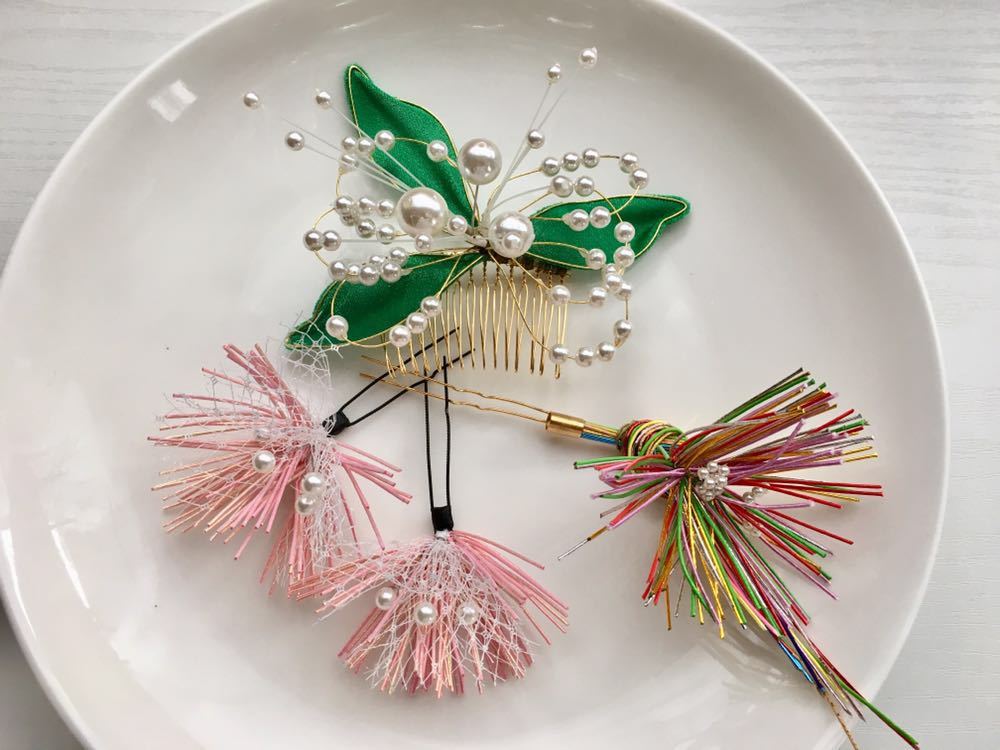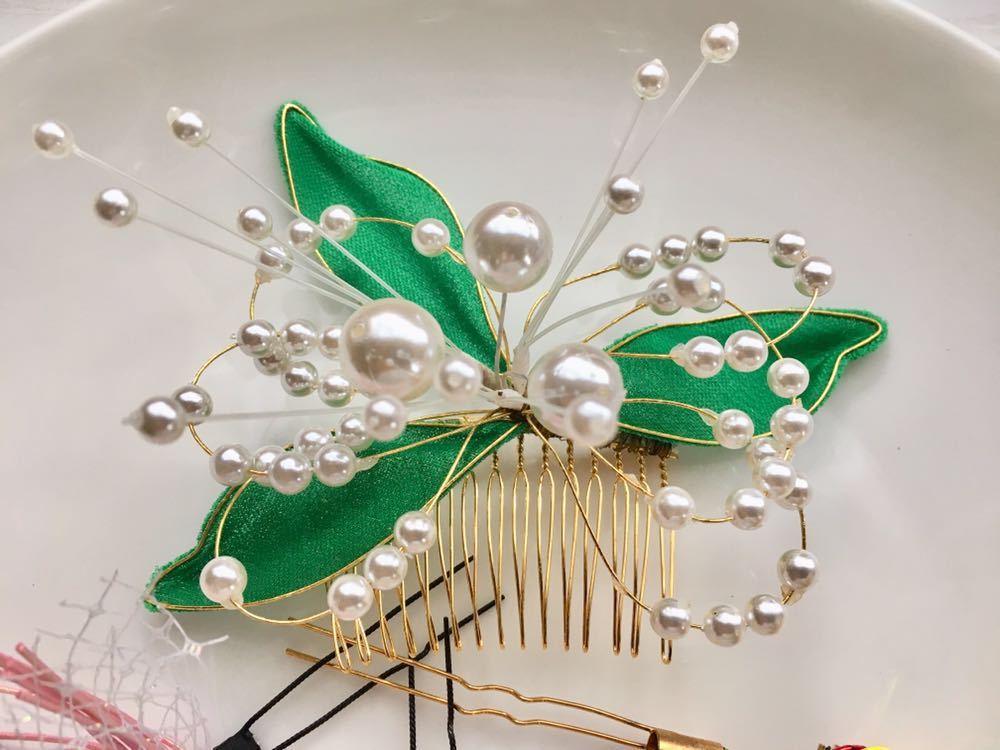 こちら、上品な雰囲気の髪飾り4点セットになります。