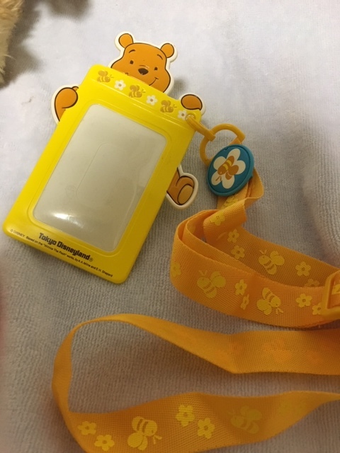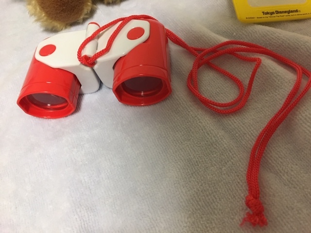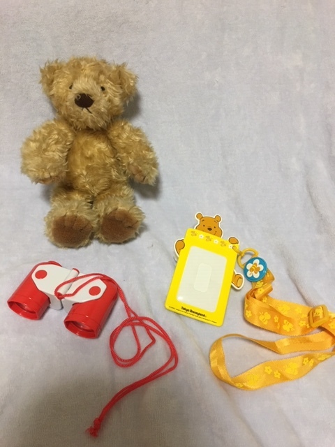 未使用/折りたたみ式双眼鏡(セット時:約16×6×3cm)&未使用/東京ディズニーランド製プーさん定期券入れ紐(最長約85cm)付&使用/モフモフなテディベア身長約20cm